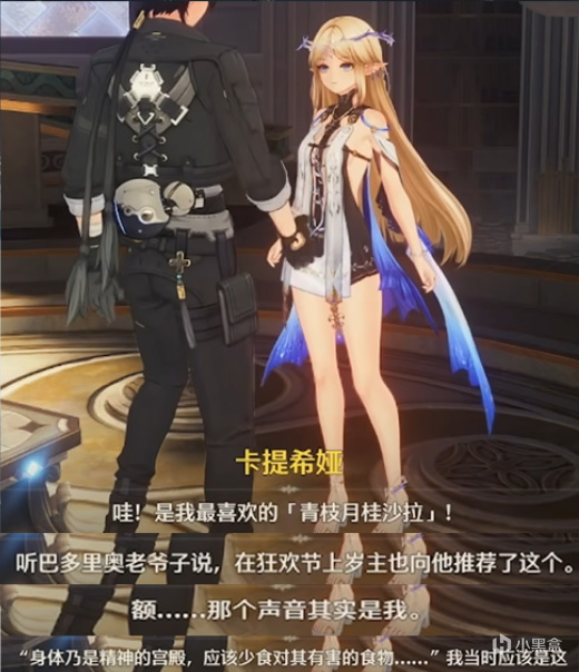 而且不僅僅信的東西不對勁,連聖女到聖音全都是假的,在探索卡提西婭身世的時候還有一個小彩蛋,我們拿出揹包中的【青枝月桂沙拉】給卡提西婭喫,卡提西婭不僅會好感度飆升表示這是她的最愛,還會透露給我們狂歡節歲主推薦美食也是小卡嘴饞講的,這假聖旨到了菲比那可是真神蹟啦!在菲比討厭的食物裏可以看到卡提西婭說的原句,還有她爲遵循聖旨而不得不喫被酸的哭哭的樣子,哎呀,這卡提西婭怎麼這麼壞!