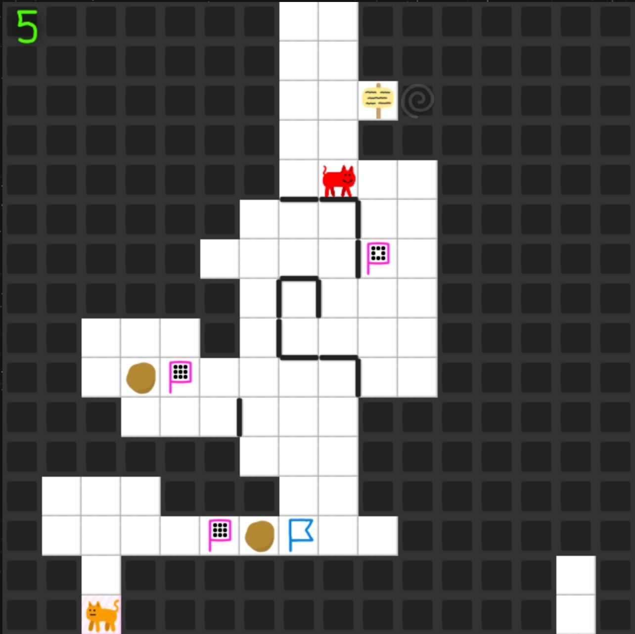 這些作品都有類似的核心機制:看到上圖中帶點的“旗子”了嗎?它們是存檔點,上面的點數表示在踩上存檔點後,主角的剩餘移動步數所恢復到的值。是的,主角是有“剩餘移動步數限制”的,如果走完了步數就會死掉。