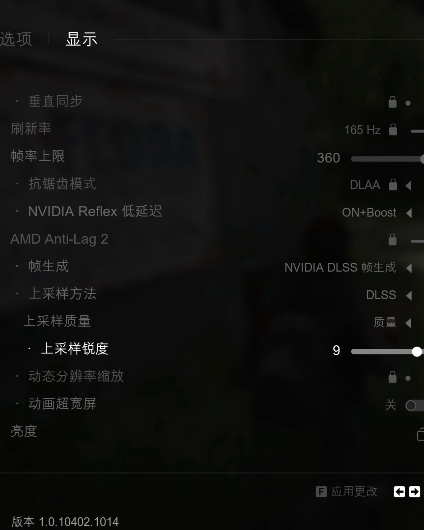 個人其實覺得不開幀生成也夠用 70幀操作起來比補幀後的100要跟手不少(本人用的手柄操作 )畢竟默認是打開reflex低延遲的 幀生成也要打開的盒友就把低延遲開到on+boost 正常不是使用帶魚屏的就不需要開動畫超寬屏了
