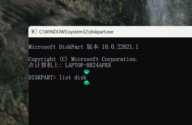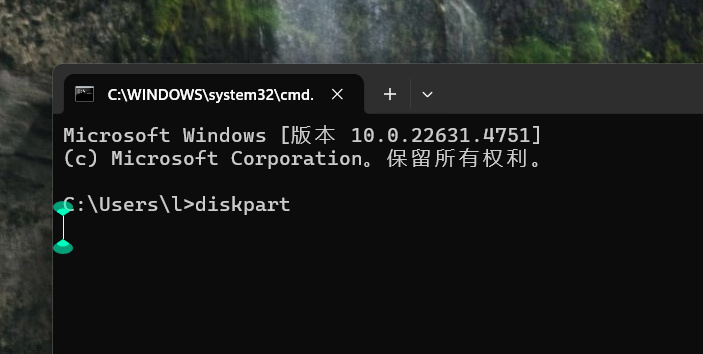 重複步驟①,輸入“diskpart”
