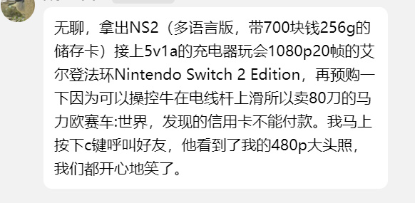 當然,以上這些內容帶着無數剛剛被冷水淋透的玩家們的洶湧情緒,其中不少內容的真實性,其實非常值得商榷。我也想過乘上情緒的浪頭,加入這股討伐任天堂的大潮,畢竟輿論越洶湧,人羣購買慾望就越低,我搶到原價主機的概率就越高,但我卻不能這麼做——