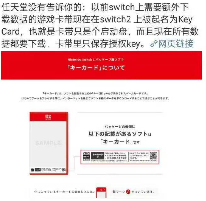 什麼叫作Switch 2上的部分卡帶不再帶有遊戲數據,卡帶裏只保存授權key——合着我離線狀態下,只用一張卡帶就無法啓動遊戲?