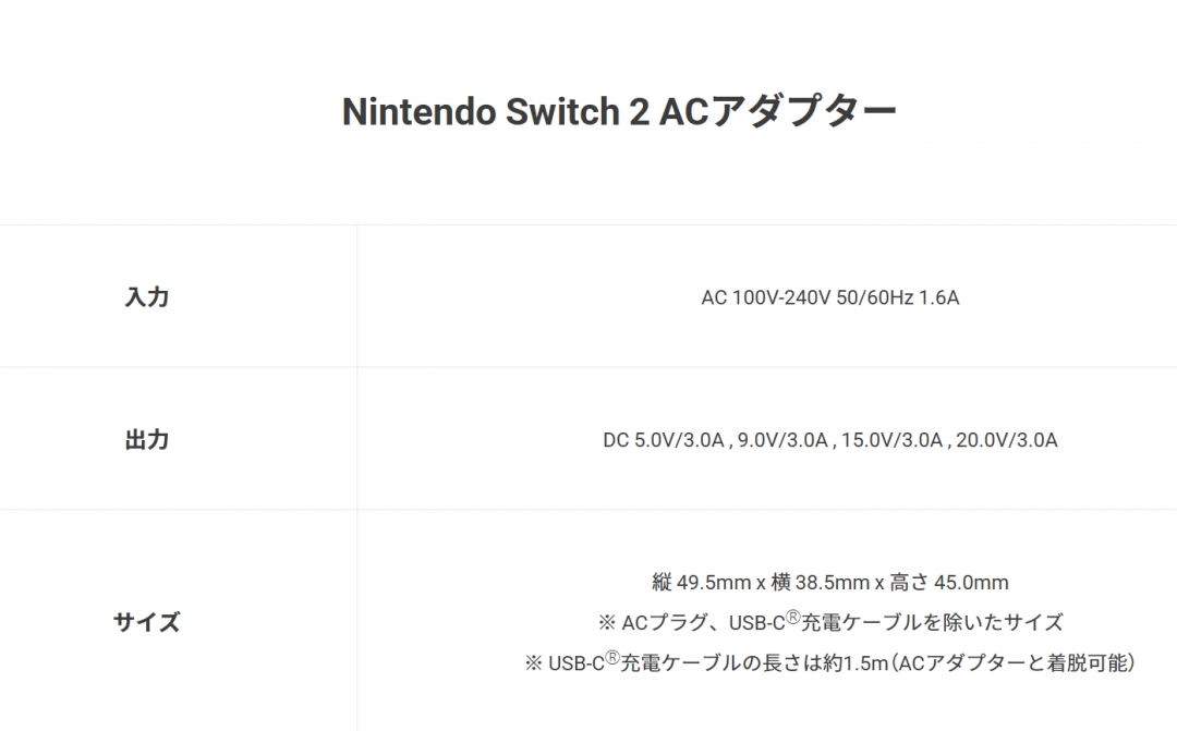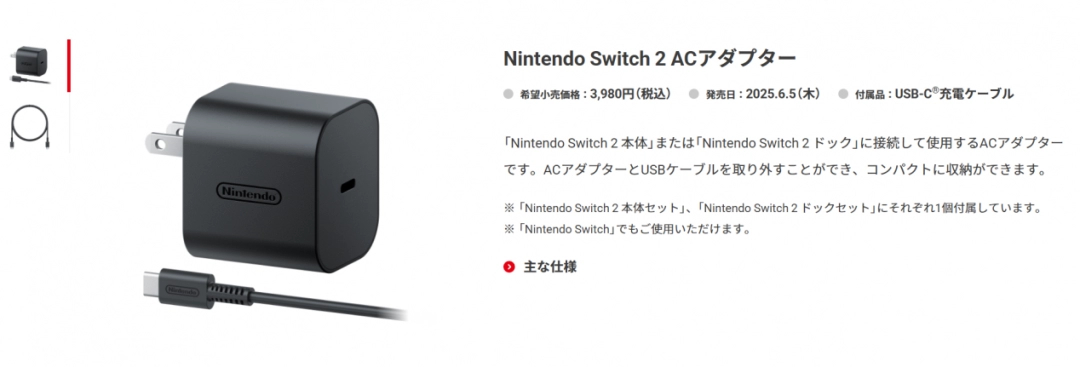 “5V1A的充電器”也並非事實,任天堂官網上的標配充電器雖然價格確實昂貴(3980日元),但充電規格也有最起碼的20V3A——連蘋果都早就不用5V1A了,大人,時代早就變了。