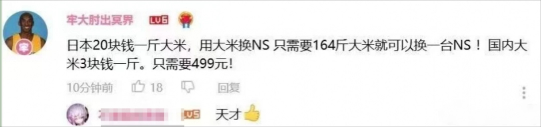 爲此,中國老哥們則直接開始給日本人算總賬了——俺尋思你們那邊大米20塊錢一斤,用大米換Switch 2差不多是164斤,用我們這三塊錢一斤的大米結算,豈不是隻用499人民幣?勸日本人好自爲之,識時務者爲俊傑,早日放棄通脹不斷,幣值崩潰的日元,改用東亞幾千年來的主糧大米進行交易結算。
