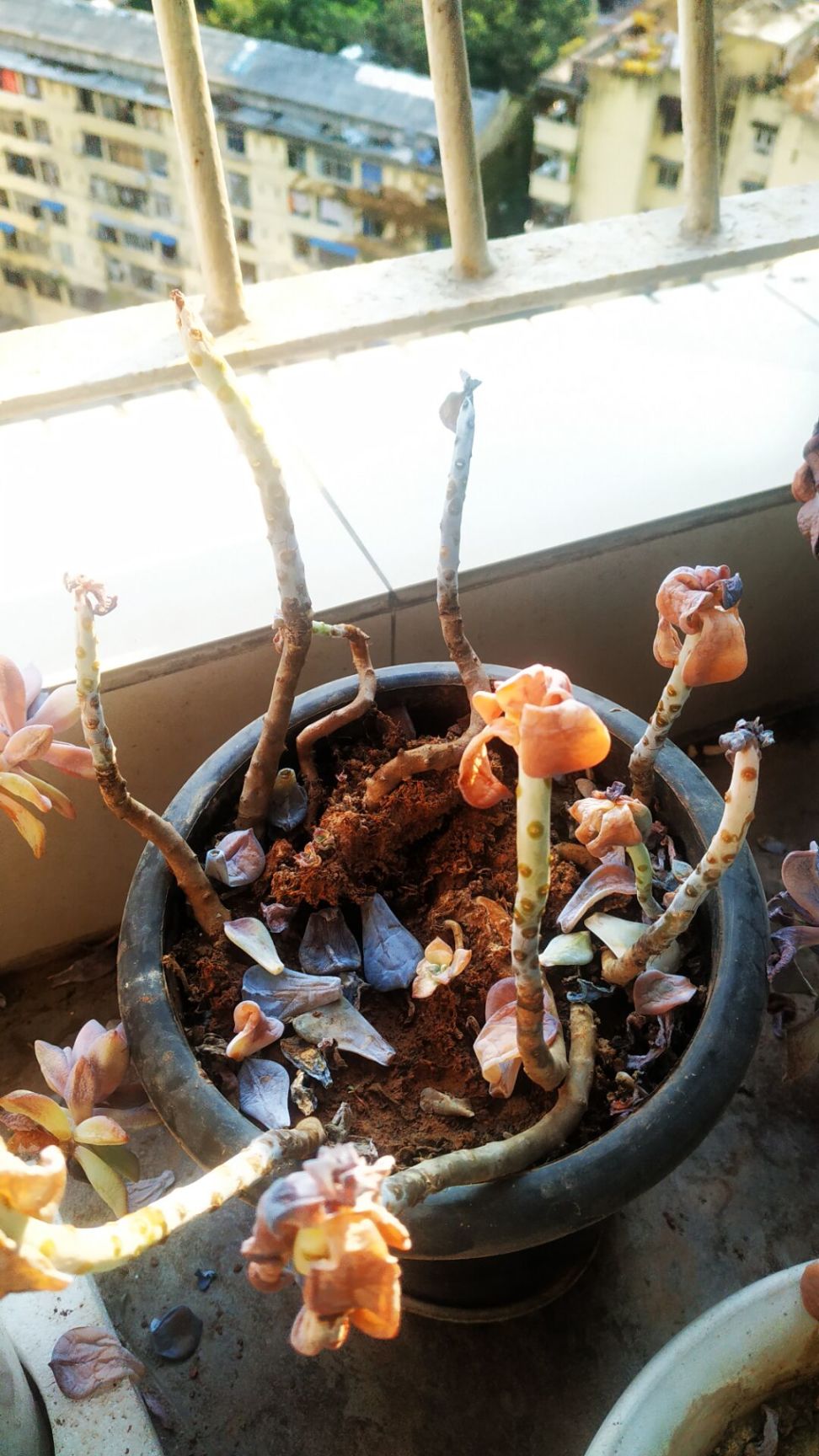 本来多肉不是挺耐旱的么?结构现在每天浇两次水都给干成这样了,没救了。
