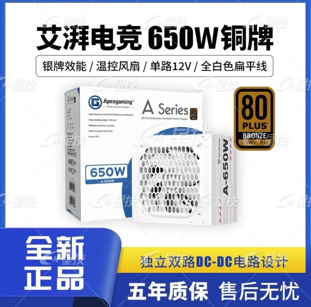 4、艾派電競在這幾年瞬間提升,品質和口碑不斷積累,各系列電源也是做得很好。比如下面的a650用的是全日系電容,唯一缺點可能就是不是模組電源和沒有達到atx3.0標準,如果介意謹慎購買。參考價:黑色258、白色298
