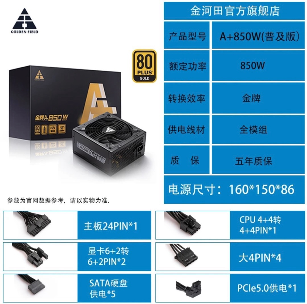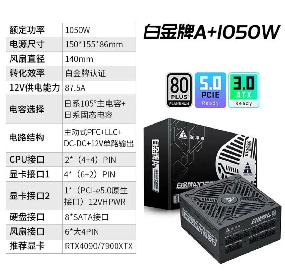 8、金河田a+這款電源白金牌10年超長質保,很適合那些電源焦慮的朋友選擇,要注意這款電源的尺寸會偏大,155*150*86會比其他電源長1釐米。