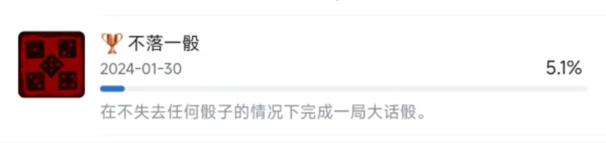 搞清楚规则之后其实不算特别难,多玩几盘就能过,需要一些运气成分,游戏npc毕竟不是真人,对现实里玩过这类游戏的来说这个成就属于白送了,游戏里进酒吧桌上一般都是三个npc左右,有时候会更少,想达成条件也就更简单。