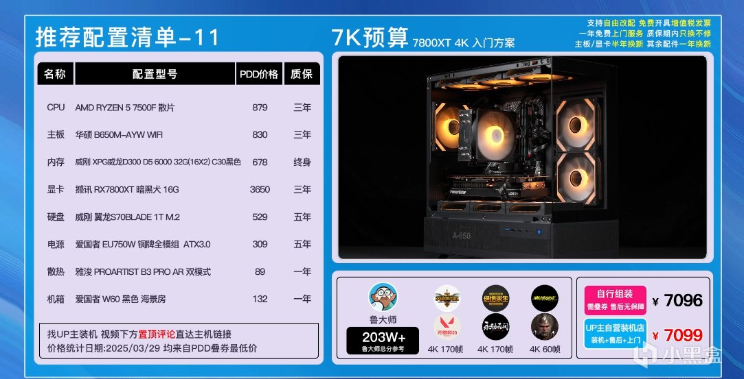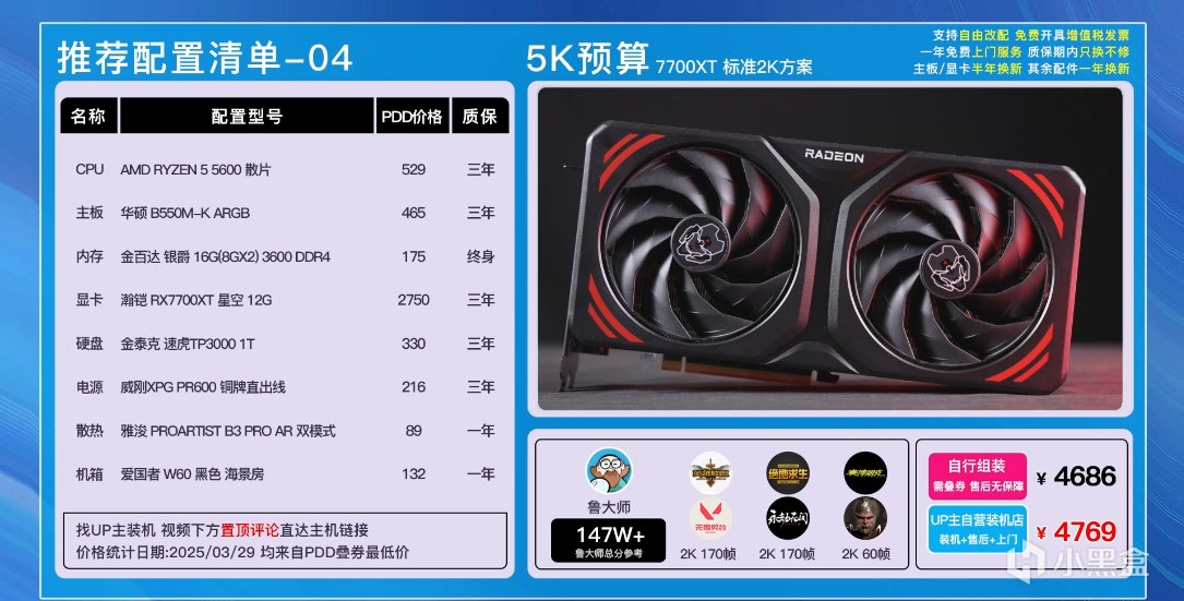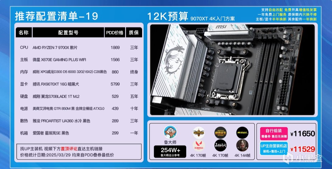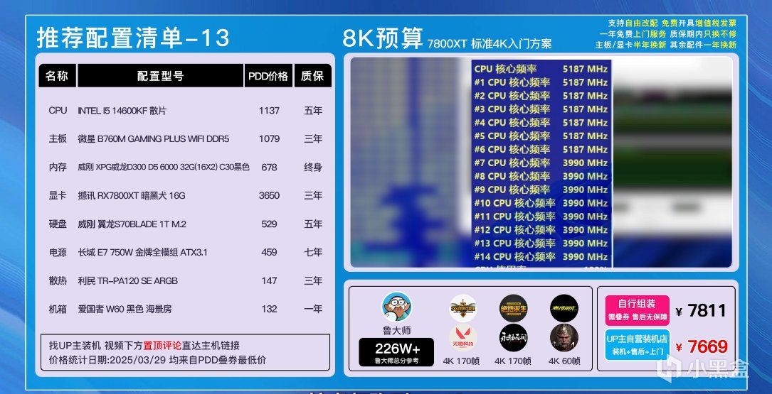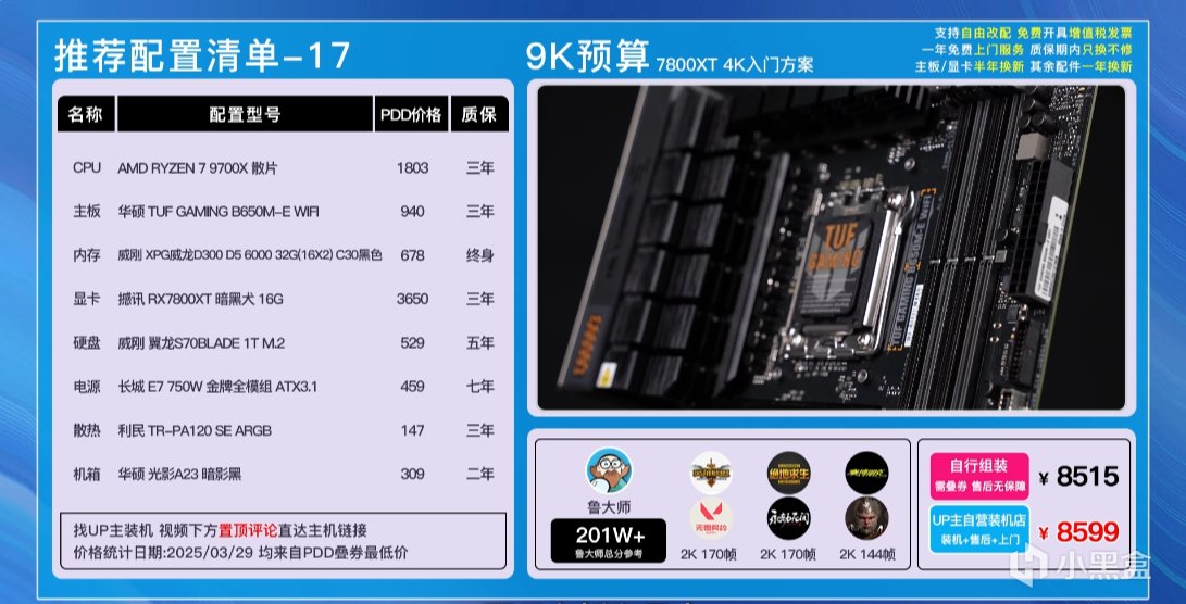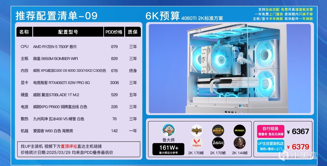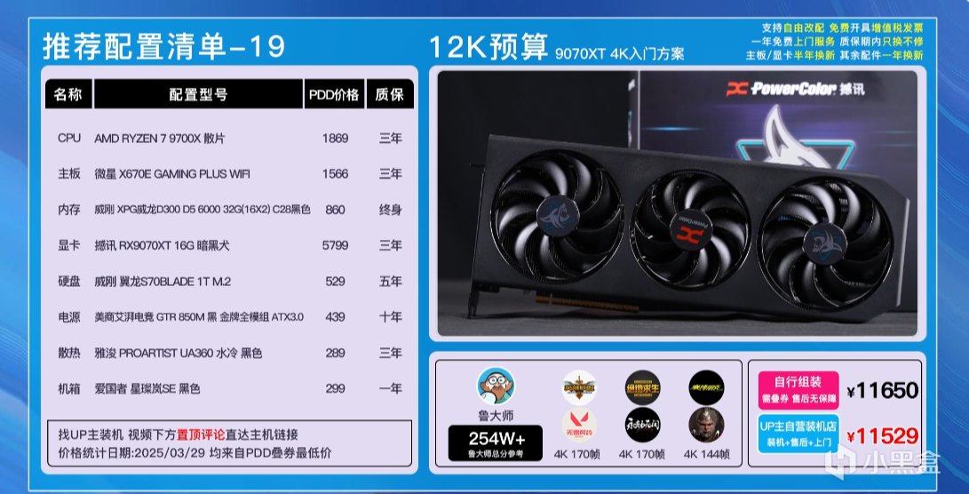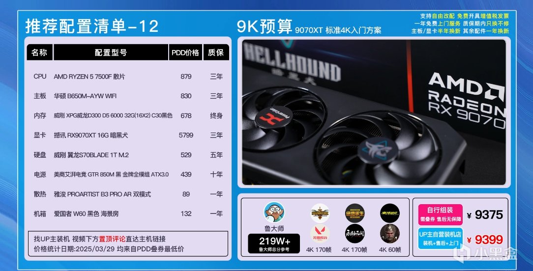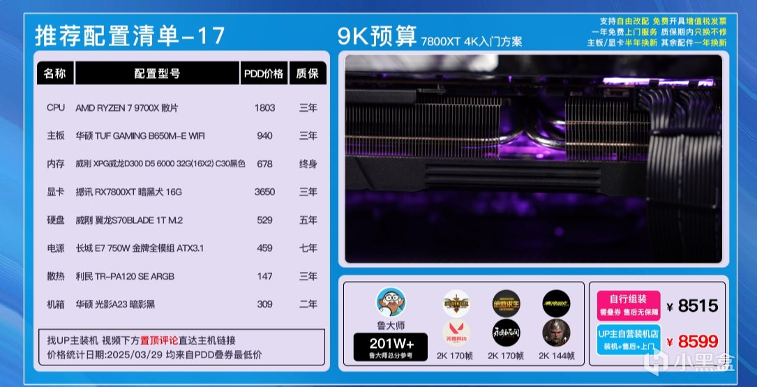 如果沒有生產力的需求,9600X會更有性價比一些,視頻中的這幾套配置都可以把CPU更換成9600X。