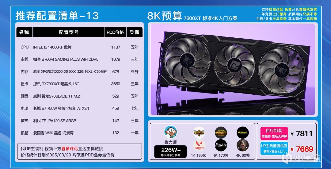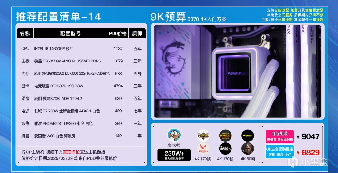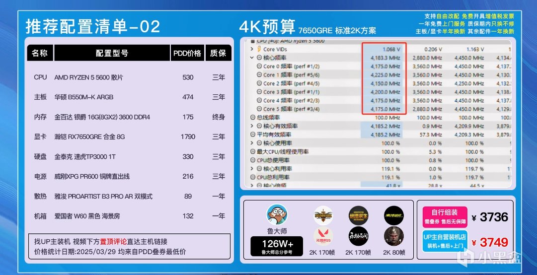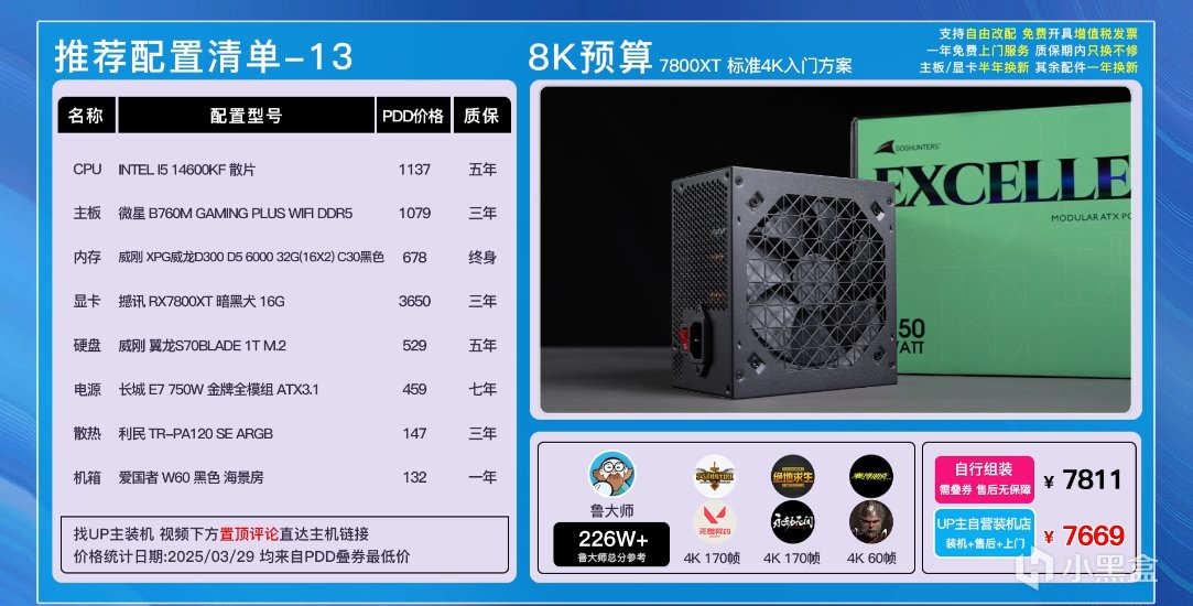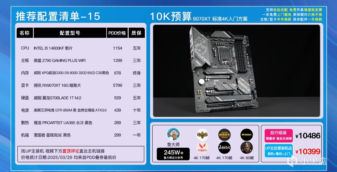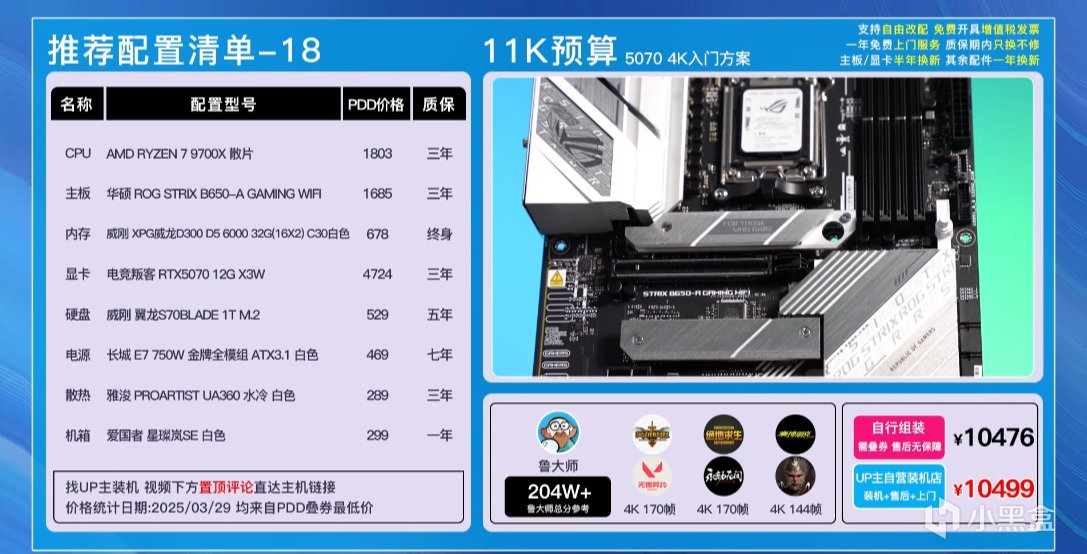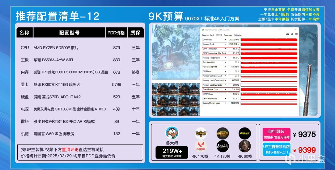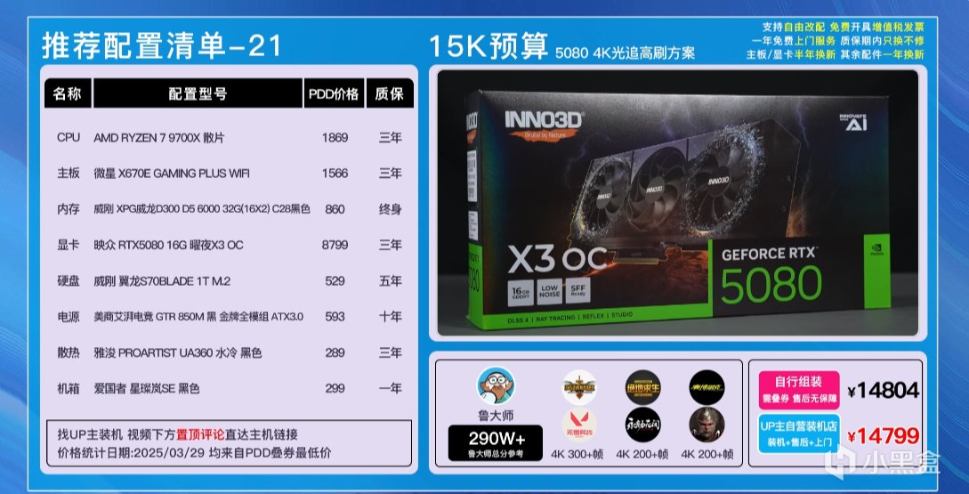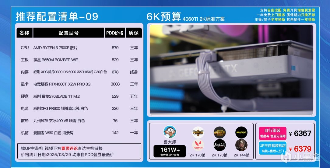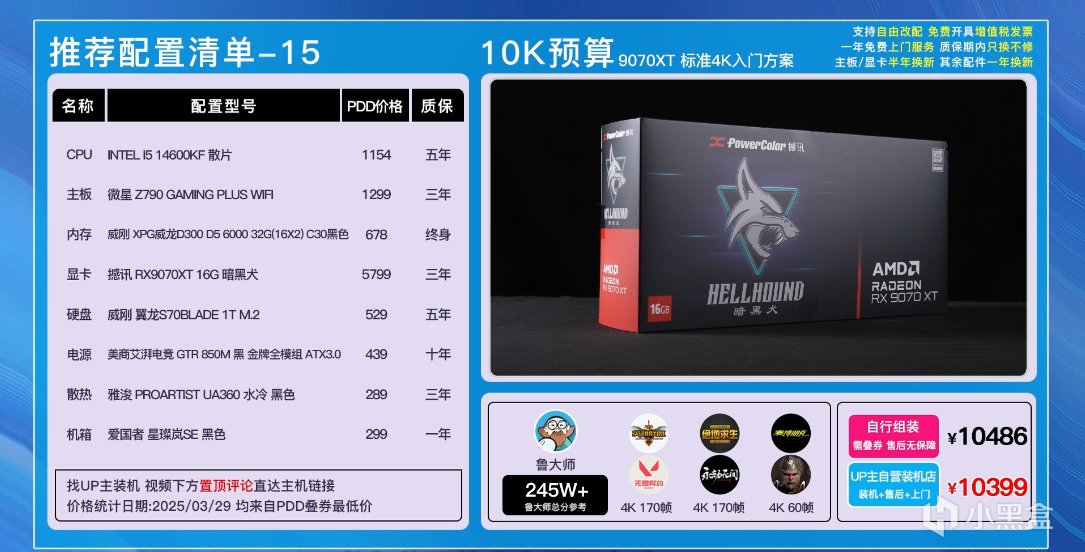 如果沒有生產力的需求,9600X會更有性價比一些,視頻中的這幾套配置都可以把CPU更換成9600X。