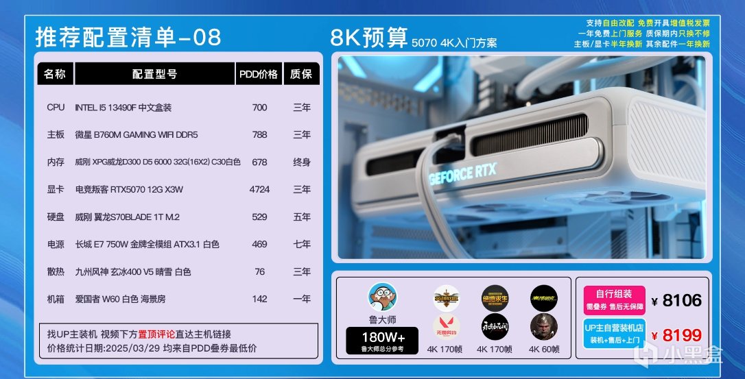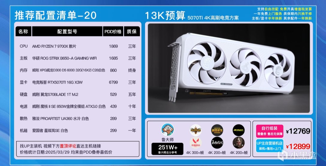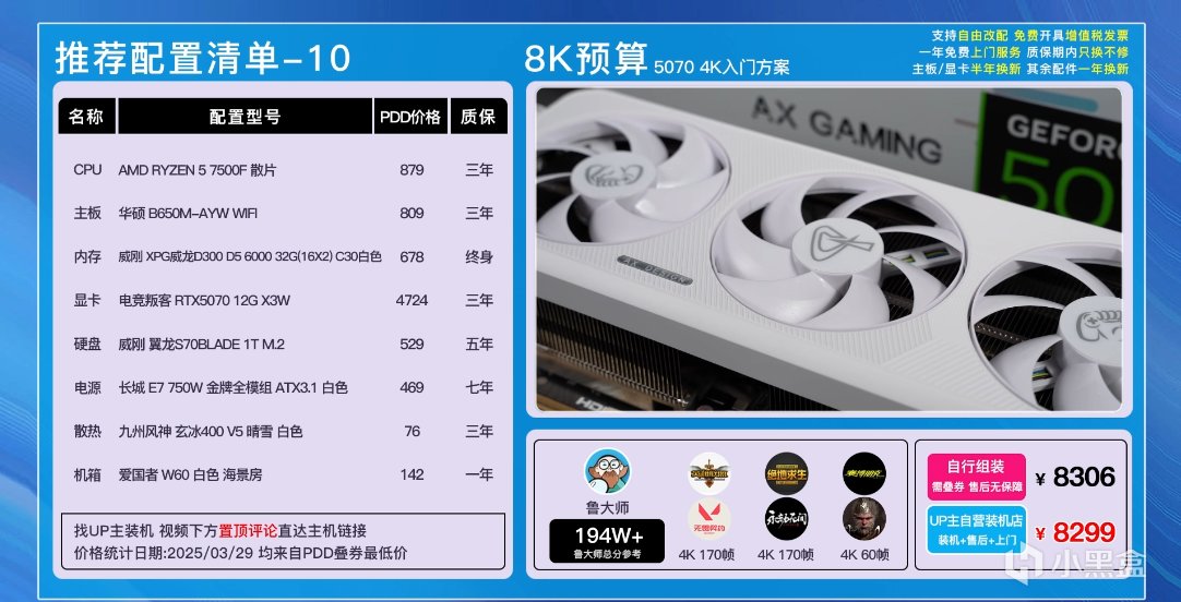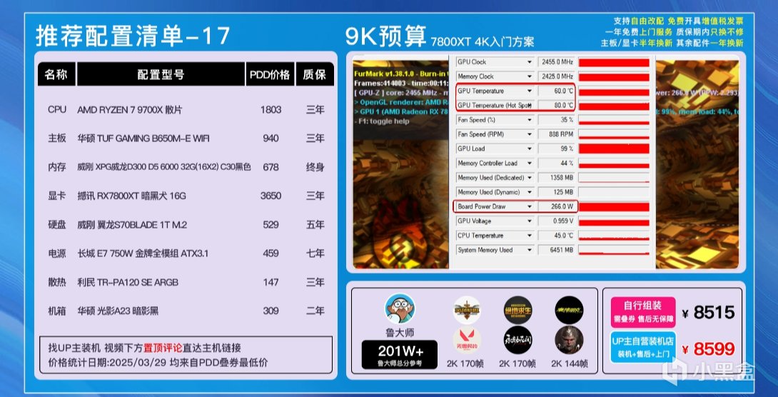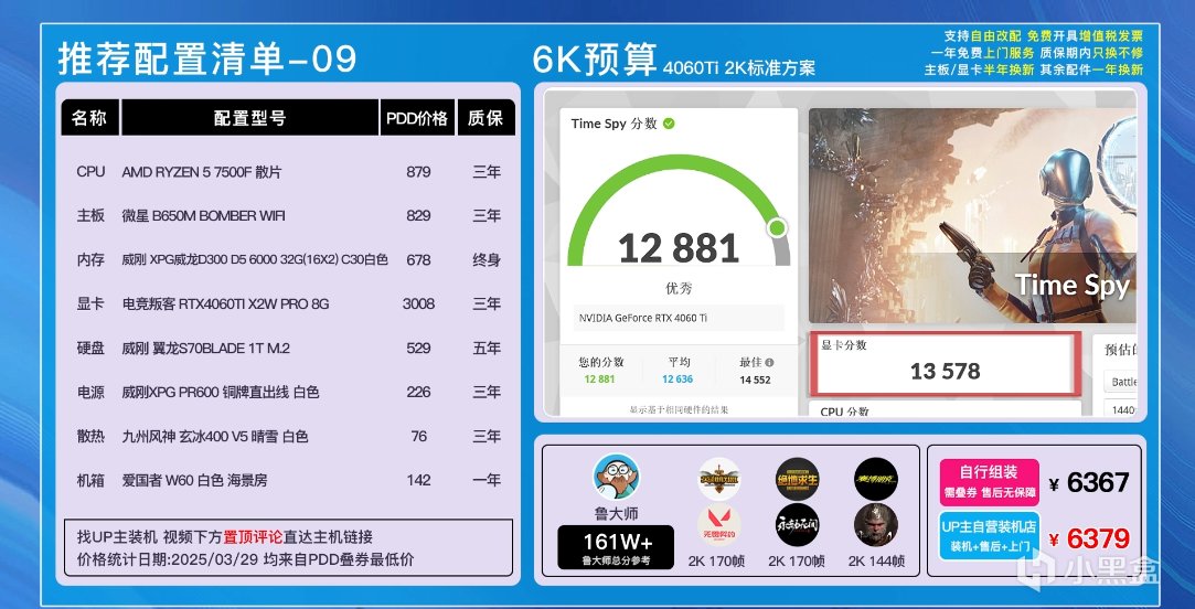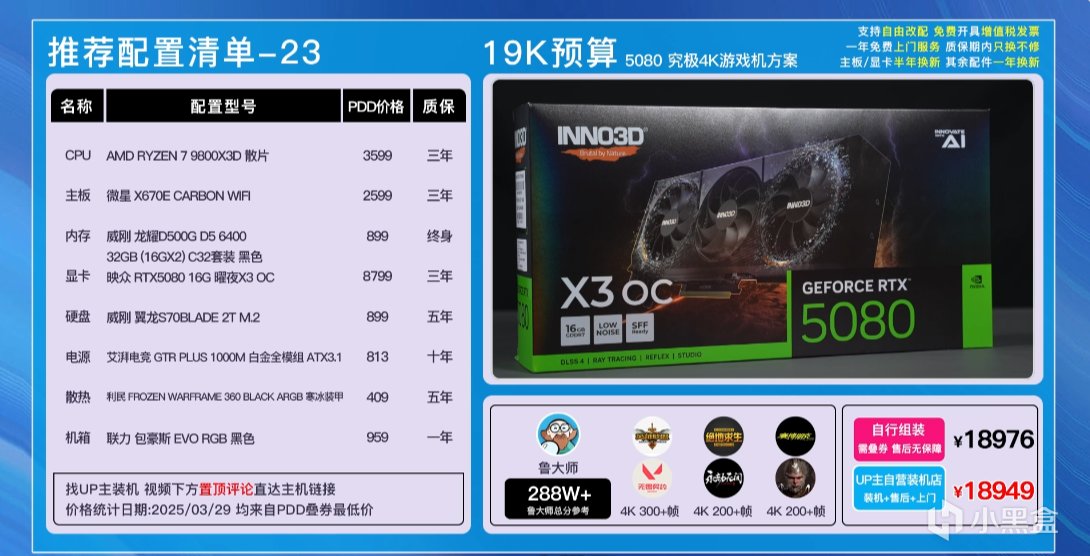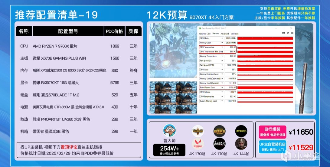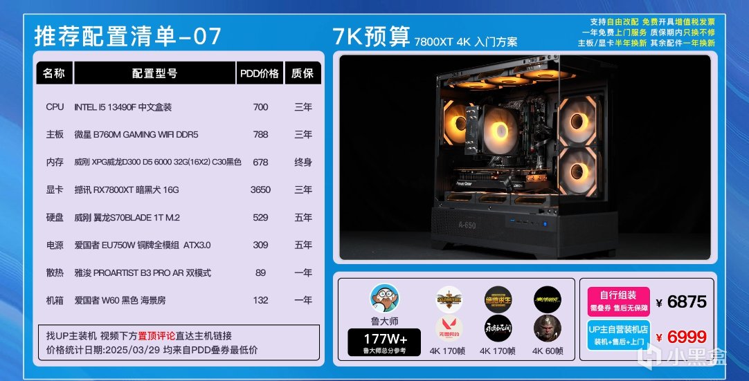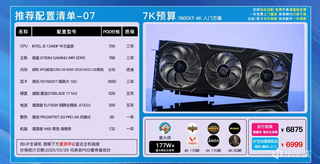 如果沒有生產力的需求,9600X會更有性價比一些,視頻中的這幾套配置都可以把CPU更換成9600X。