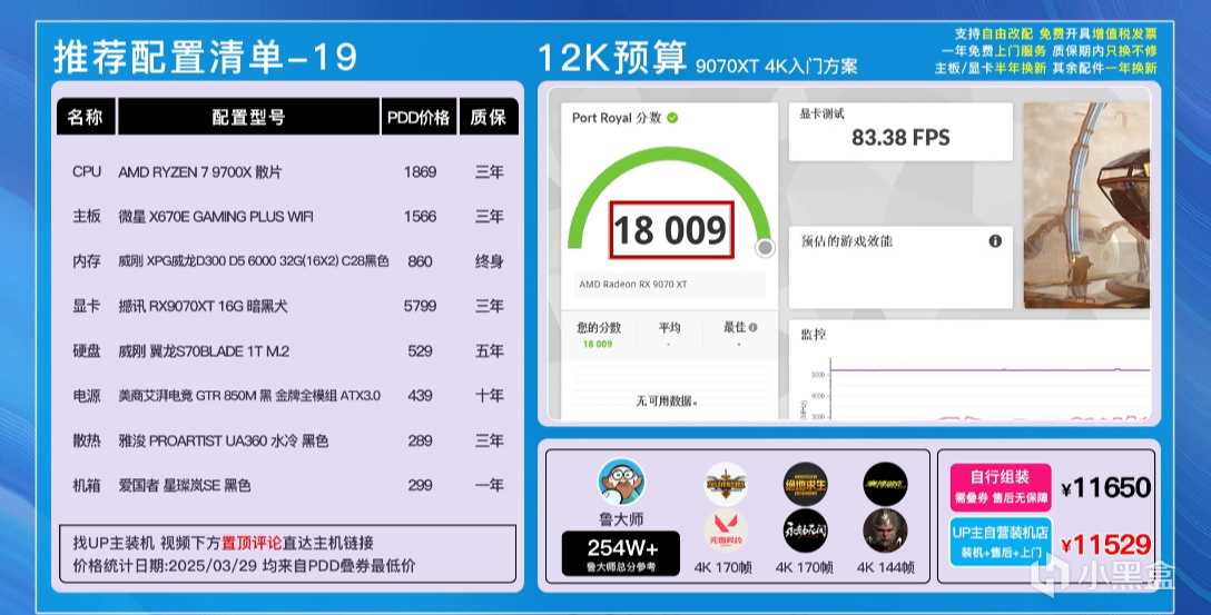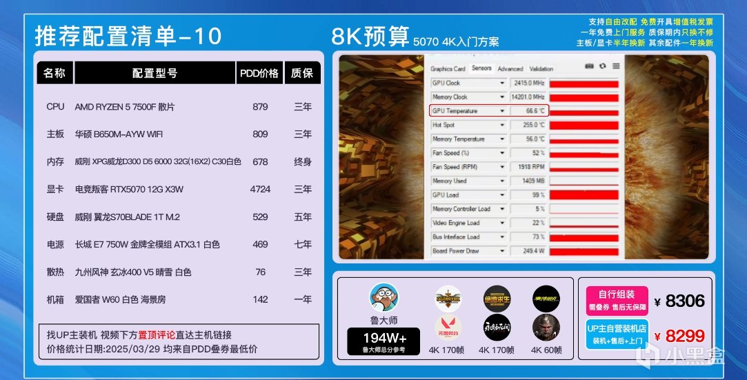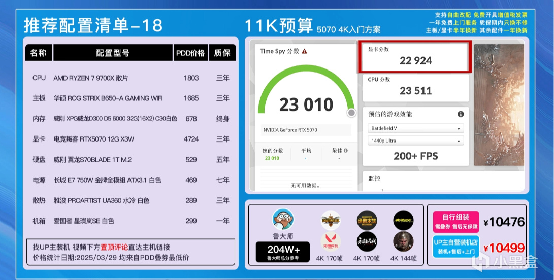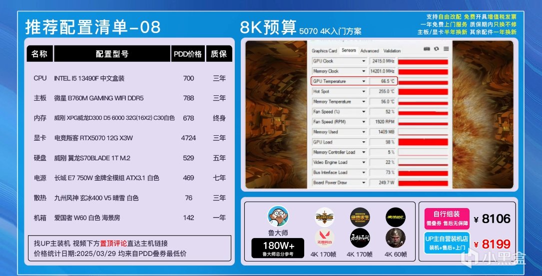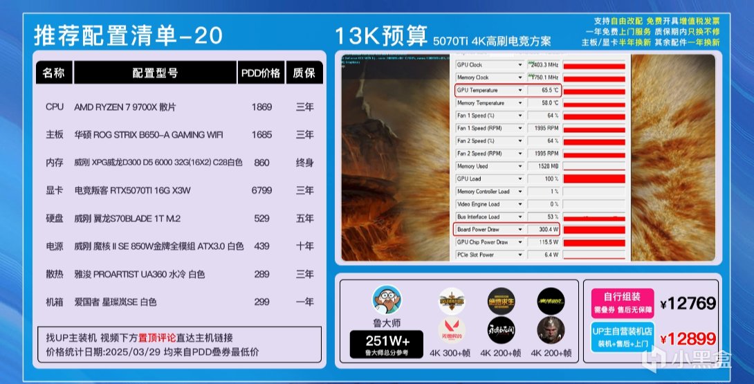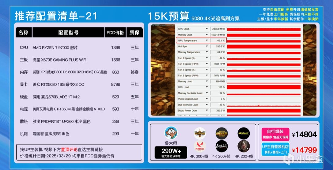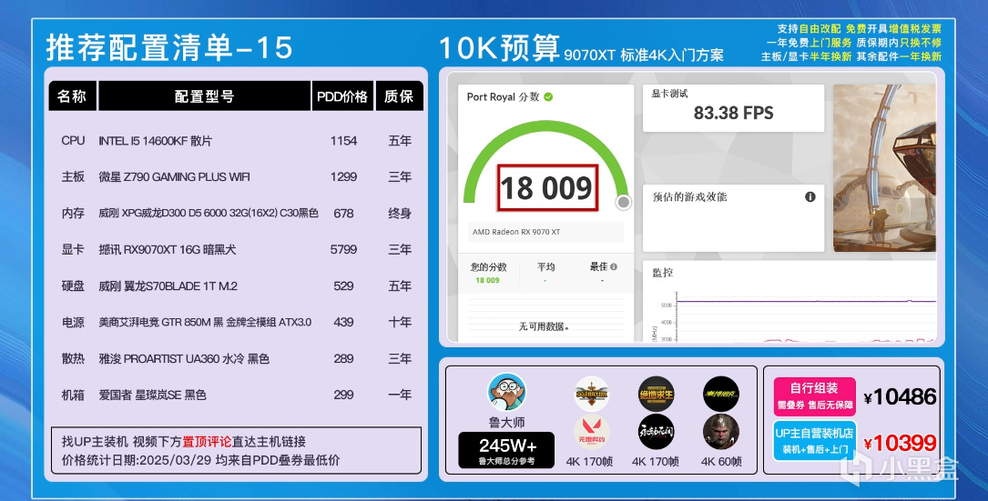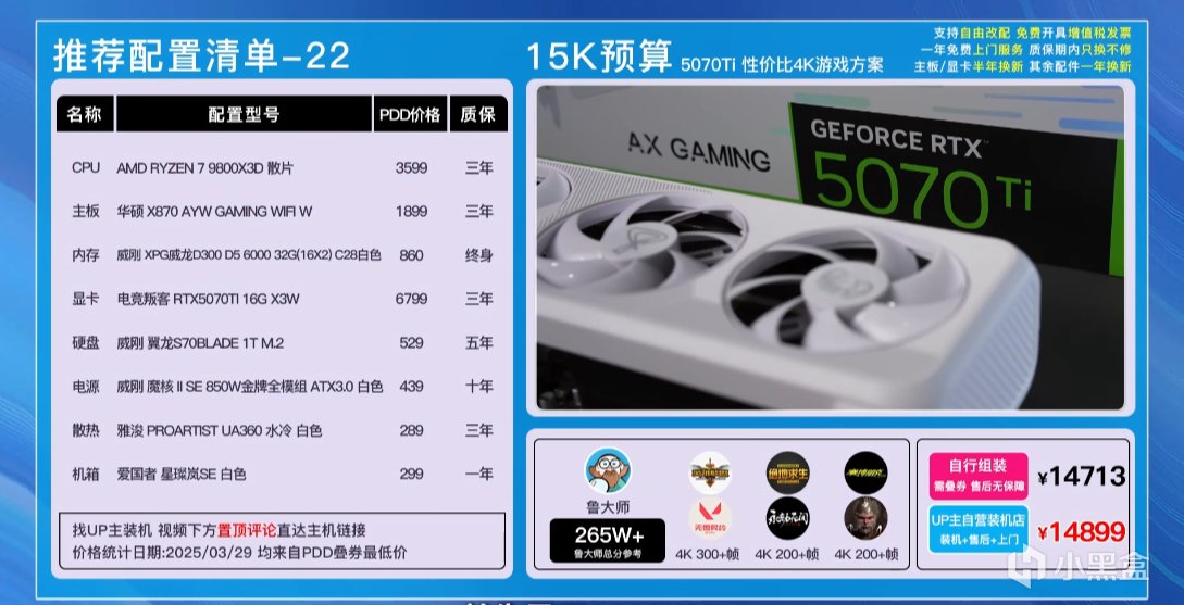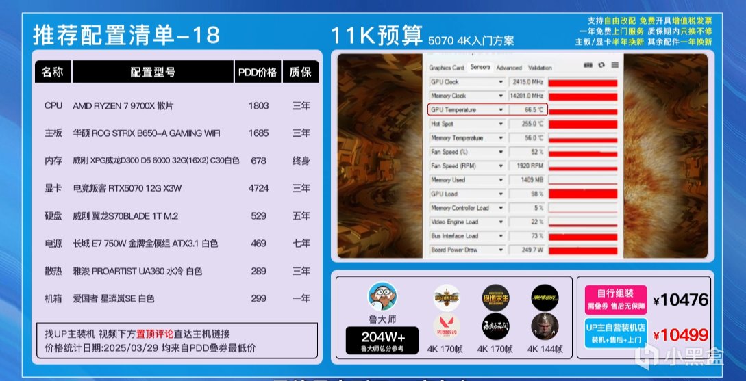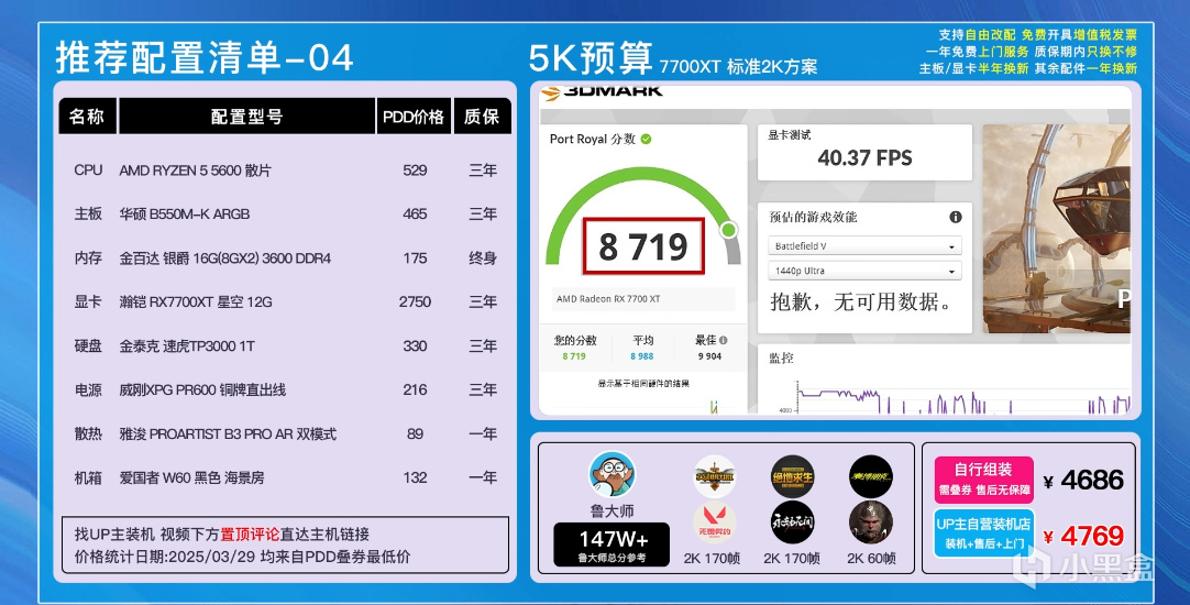 如果沒有生產力的需求,9600X會更有性價比一些,視頻中的這幾套配置都可以把CPU更換成9600X。