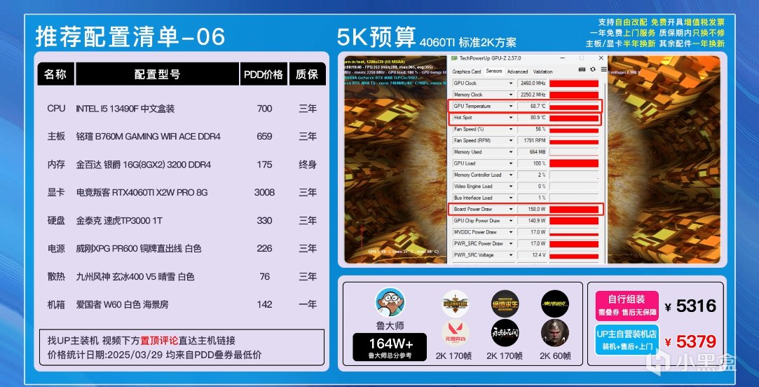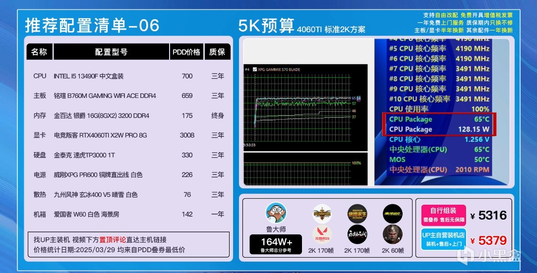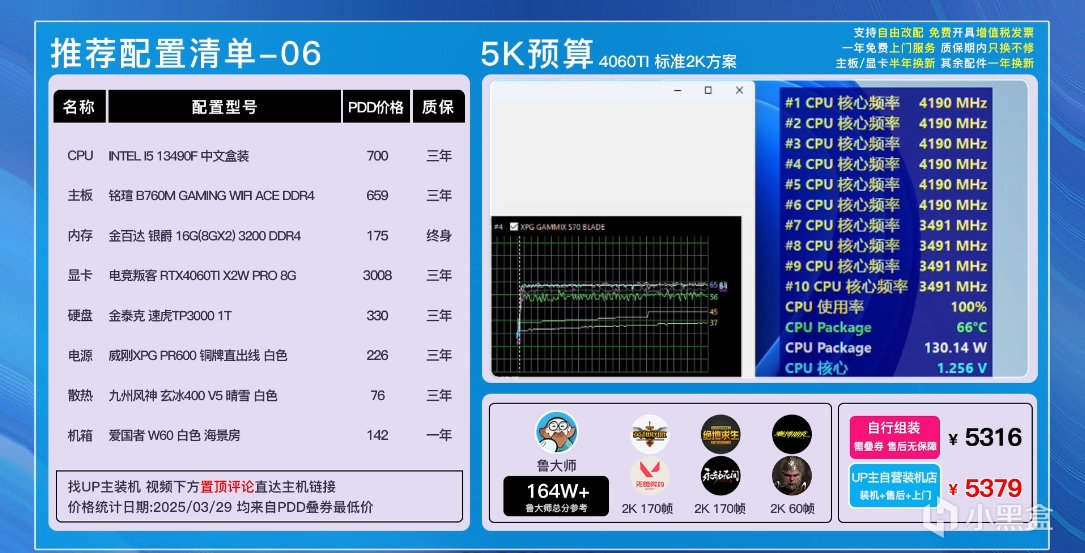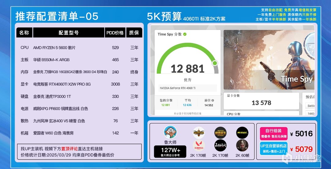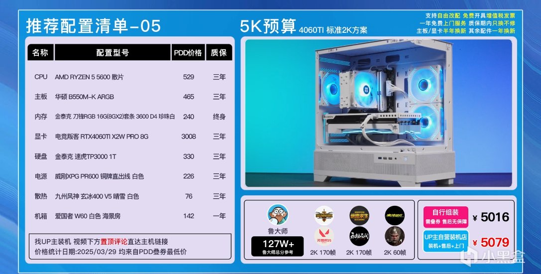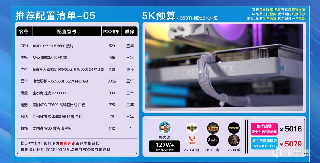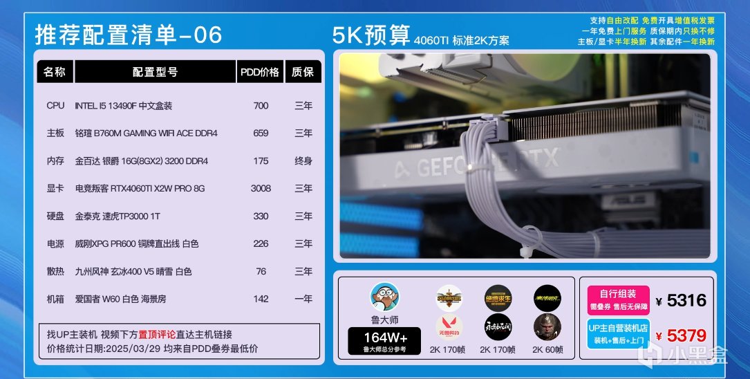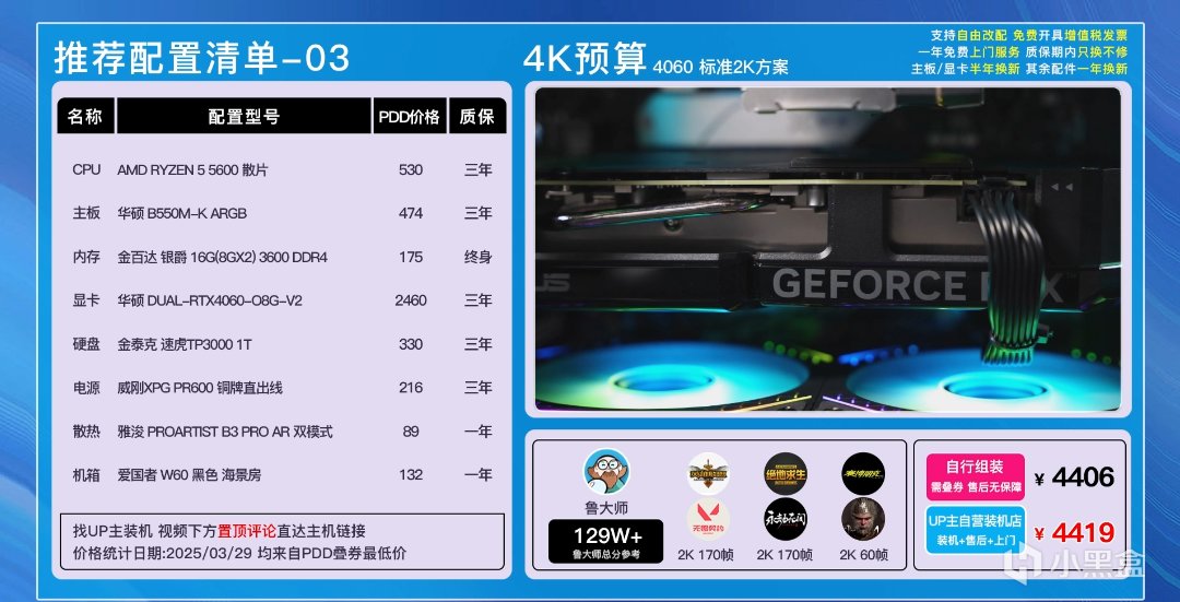 4060的方案整體變化不大,僅僅是在上一套方案的基礎上更換了顯卡,如果你考慮後續搭配5060或者5060Ti,在這一套方案的基礎上更換一張顯卡即可。