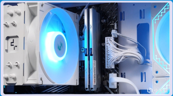 還有威剛的S70B PCIe4.0滿速TLC顆粒自帶獨立緩存的固態硬盤以及威剛PR600單路12V輸出電源,散熱方面使用了雅浚的B3 PRO 四熱管風冷散熱,整機做成了超高顏值的白色海景房。