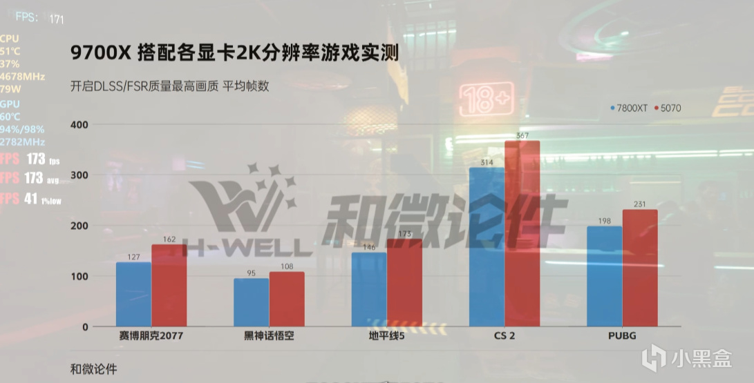 7800XT以及5070我們選擇了在2K分辨率下最高畫質進行測試,5070得益於更強的DLSS技術,在3A大作的平均幀數對比7800XT的提升是立竿見影的,不過好在2張顯卡都可以達成平均百幀的幀數表現,但是更換到只拼光柵性能的網遊中,5070的優勢就不是很大了,如果你只有遊戲方面的需求,那麼7800XT依然是更有性價比的選擇,5070更多算是六邊形戰士,3A大作想要體驗一下高刷光追,或者有一定的生產力需求,那麼你只能加錢選擇5070。