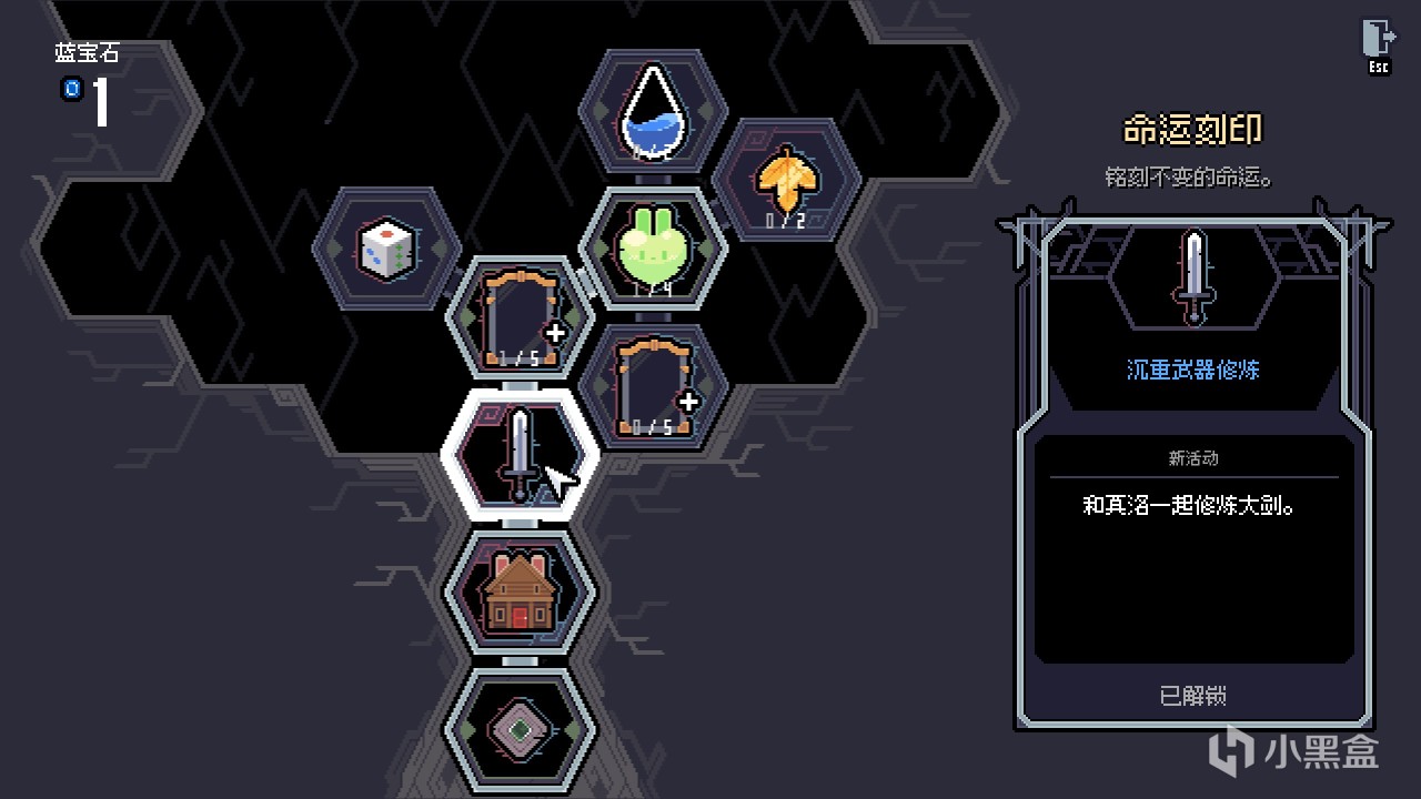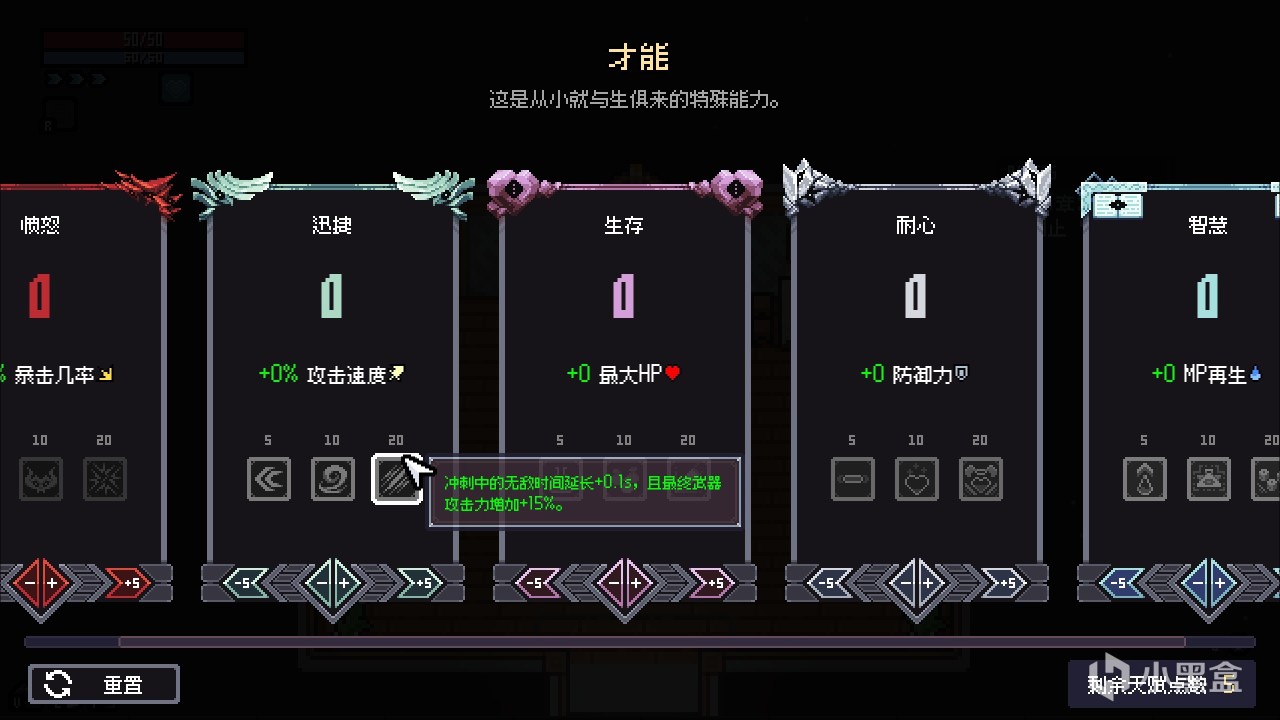 而在局外成長方面,玩家在一局遊戲裏“升級”或者擊敗boss後可以獲得藍白石, 通過藍白石加點則可以獲得額外的增益或者解鎖新的局內道具。
