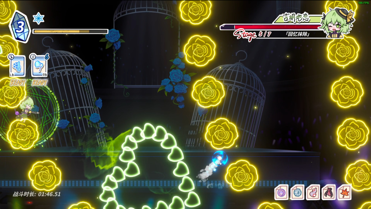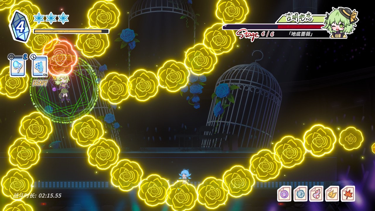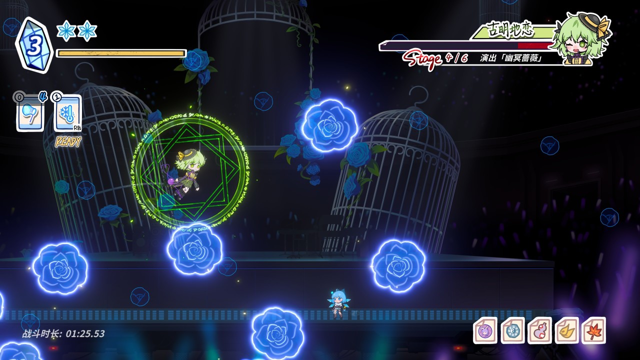 再比如「幽冥薔薇」階段,如果玩家平時喜歡研究符卡搭配,意識到紅色薔薇會追着“急凍氣泡”跑,那麼就能輕鬆很多。