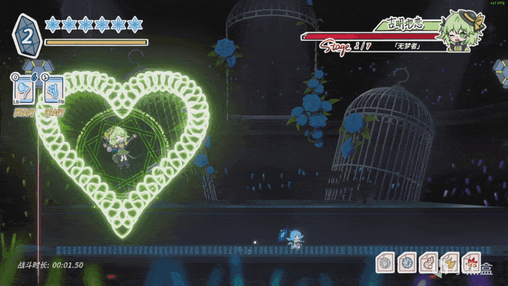 一開始我總下意識的用衝刺,體力會不夠用。在之前其他角色的戰鬥裏我也很少只用跳躲彈幕,戀戀的彈幕設計就很好地給玩家“上了一課”
