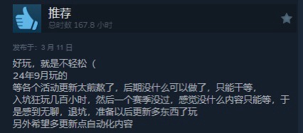 最大的之一在于,短期目标导向流程公式化,缺乏长期目标。游戏的核心玩法以短期目标为导向,流程公式化严重。玩家在短时间内即可完成开荒、刷本、赛季重置等流程,缺乏长期目标。这种玩法设计,让玩家在体验完初期内容后,迅速感到乏味。