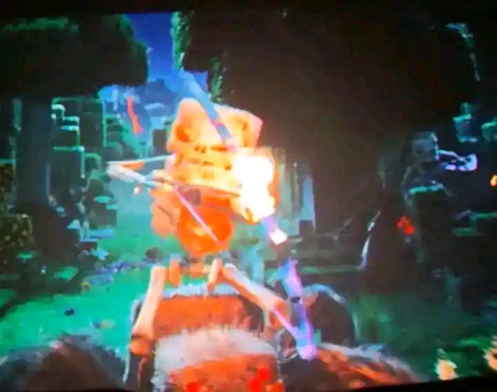 射出火焰箭的骷髅和蜘蛛骑士全员附魔弓箭火矢,并且触发了苦力怕会被火焰引爆的游戏设定。可惜的是苦力怕直接爆炸破坏了主角的堡垒而且还没有掉落c418唱片这一游戏设定细节彩蛋。