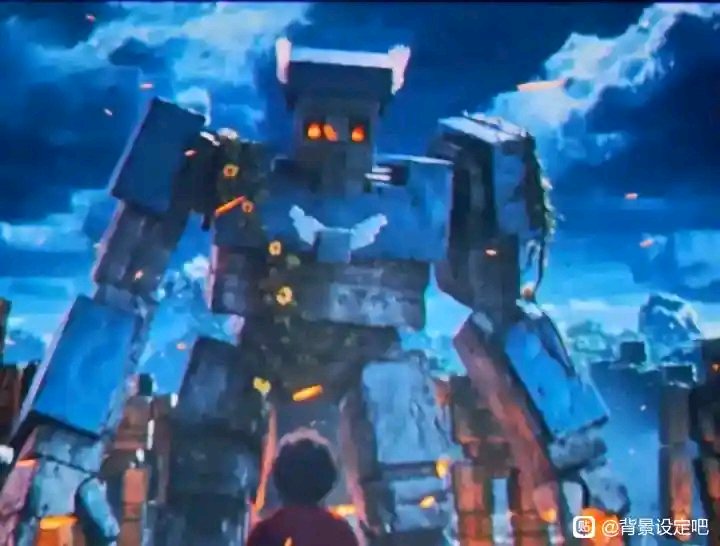 结尾大决战的时候小孩哥用迅捷鞋代替了南瓜做出来了一个超级加强像是擎天柱的铁傀儡。