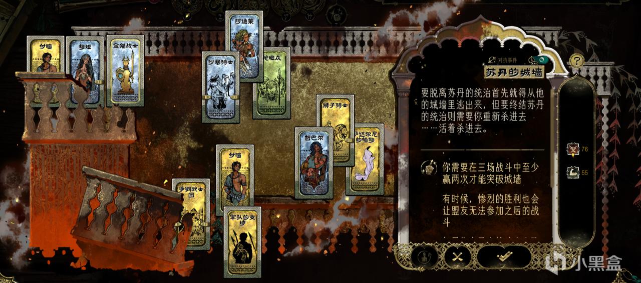 宰相的工作、蘇丹的猜忌一定要完成,否則算作遊戲失敗。
