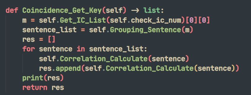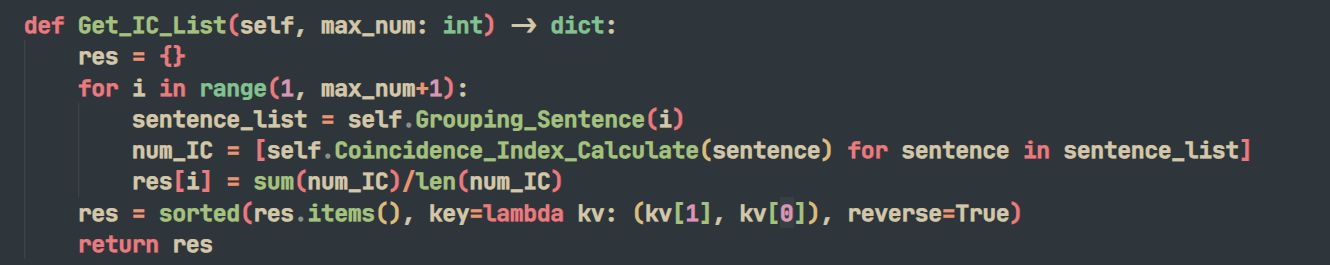 首先重合指數法得到最大的IC值所對應的密鑰長度m=3