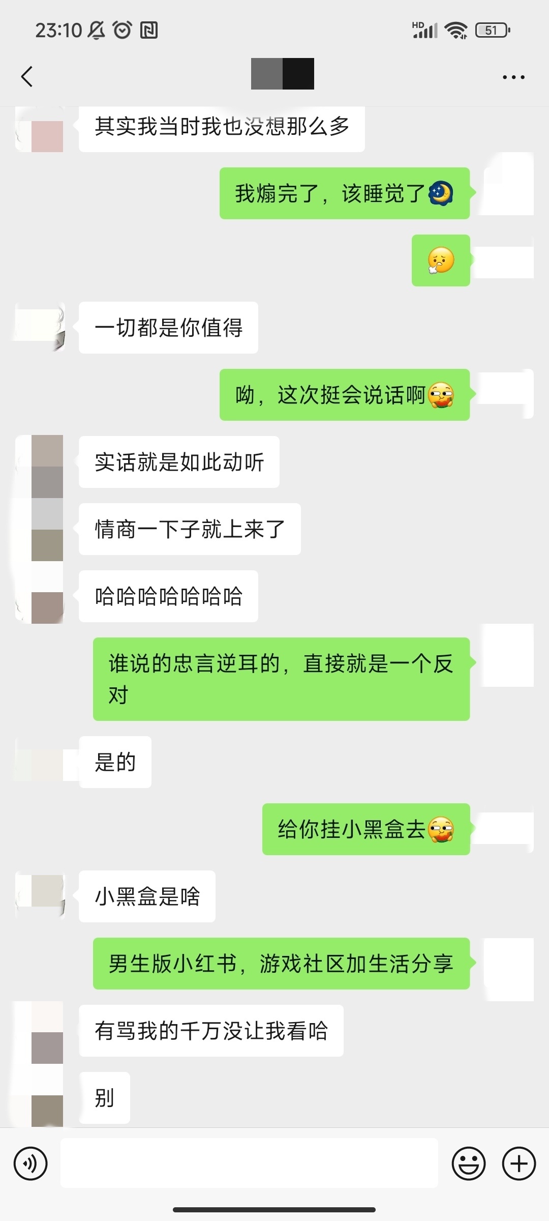 大一(她大二),新生和老油条的碰撞,我延续高中的学习方式,但成绩还不如突击的舍友,道心破碎,退出学习模式,开始接触steam,她也一样摆烂,悠闲自得吧。平时也会聊聊天,吐槽一下生活什么的,寒假还有一件特别搞笑的事,第一次一起出来吃饭看电影,我第一次见她化妆,直接一顿批评(感觉妆有点重了,不适合她,而且那妆在她脸上真的不和谐),中午吃了烤鱼,上菜太慢了,电影要赶不上了,我让她先吃,我一个人先去,但还是一起去了(第一次去电影院,而且我真的喜欢柯南,所以比较着急),我坚持要去看柯南的大电影,万圣节的新娘,被她疯狂吐槽;暑假的时候,她带着闺蜜约我和另一个男生F(她高二同桌,我高二下铺,男同)一起吃饭,我出来太着急,坐上公交才发现穿的拖鞋(我家村里的,距离公交站电动车15分钟,想着这么熟了,拖鞋就拖鞋吧,也没去换),F睡过头了,我就跟尴尬了,毕竟有个她闺蜜我不认识(真的内向),我们仨人吃完饭他还没醒,下午两点他醒过来了,也穿了个拖鞋就过来了;