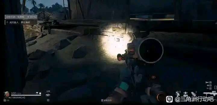 第二關隨便打打就過去了因爲這一關的人物是鎖血的而且普通難度裏就算掛機只打攔路的人機都不會失敗,等車走到一半被攔下來的時候就掏出狙擊槍來拿瞄準鏡看一下右邊的山上密碼是幾然後記下來對照一下數字就打掉前面攔路的車繼續前進。