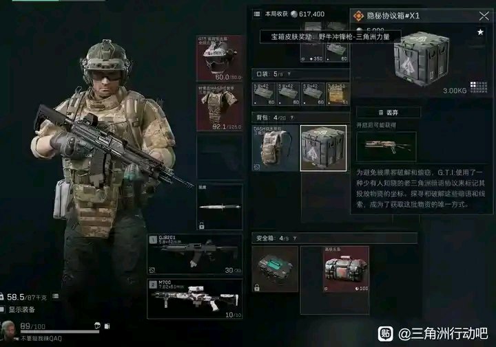然後就是進圖之前的準備了,進圖前儘量穿自己最好的甲然後進普通模式拿。因爲這幾個皮膚必須要成功通關結算後才能帶出來打開拿皮膚,如果打到一半失敗了的話那就要重新做了,武器要帶兩把分別是自己用的順手的機槍以及任意一杆狙擊槍用來在最後一關清特殊兵種還有看遠處的密碼,最好是順便裝一個手電筒來看密碼因爲圖裏第一關有點黑容易看不清密碼。