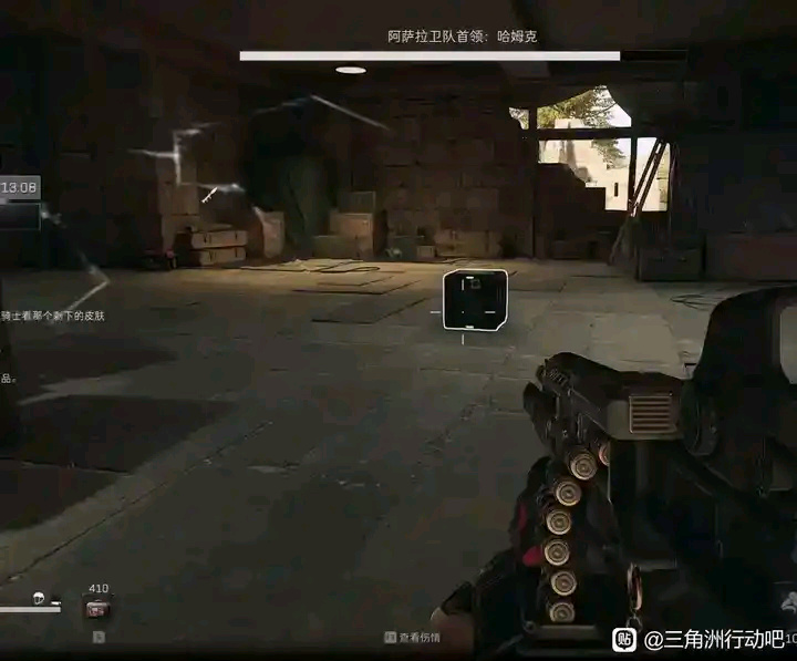 然後來到第三關,第三關進城的時候先不用進去直接從城門口往右走會來到一片雷區。最裏面就是手槍的隱藏皮膚,不會躲地雷的話就穿個六套硬跑過去然後修一下再硬跑出來,躲地雷的話就看告示牌就可以了,告示牌正面就是沒有地雷而背面就是有地雷。