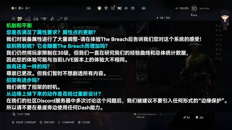 裝備上的尊崇全屬性升級,早前老基德已發佈視頻說明,基本實錘從試煉中拿出來放入了瘟疫系統中,並且不以一次性提升,而是根據每個詞條單獨進行提升。具體情況老基德也會做攻略分享。招架機制新增了硬直條,更適合比較卡手的新手玩家,搭配硬直條和韌性條相關詞條構築,很大概率會成爲新輪椅構築