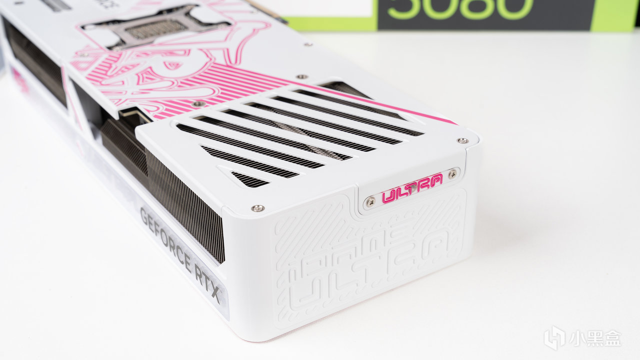 iGame GeForce RTX 5080 Ultra W OC配備全面覆蓋的金屬背板,表面也覆蓋了塗鴉風格LOGO,核心GPU部分還採用了加固支架設計,可GPU壓力分佈和緊密度,尾部有貫穿風道設計,有利於風道流暢。