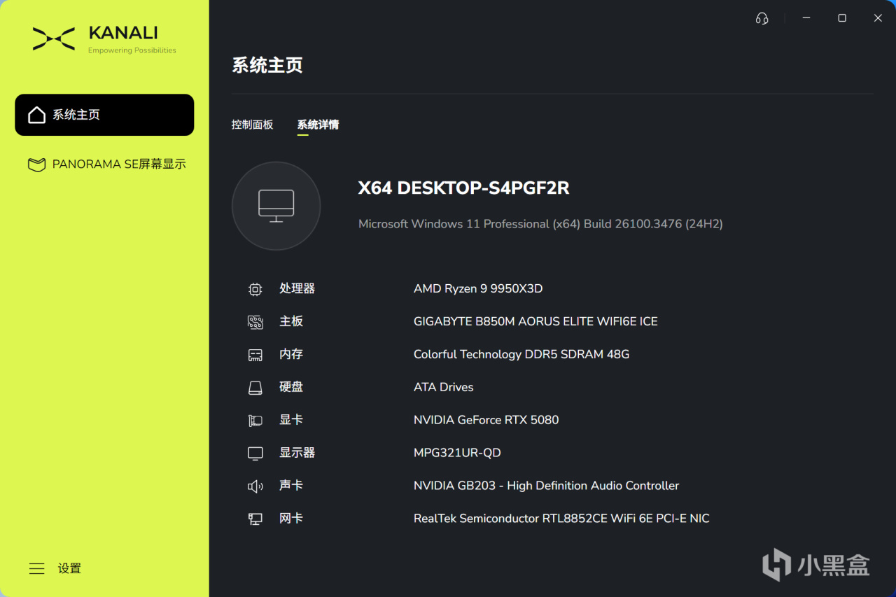 配套展域SE的軟件是KANALI,它是支持系統硬件詳情顯示的,界面設計相當簡潔。操作系統是Windows 11 24H2最新版本,顯卡驅動是NVIDIA GeForce GameReady 572.83 WHQL最新正式版,室溫大致爲26℃。
