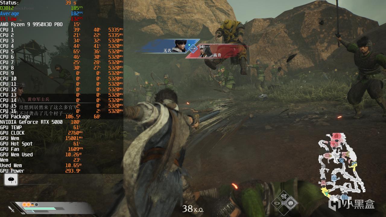 銳龍9 9950X3D+iGame GeForce RTX 5080 Ultra W OC,在4K《真三國無雙·起源》預設最高畫質+DLSS質量設置下,平均幀數達到182fps,1% LOW幀132fps