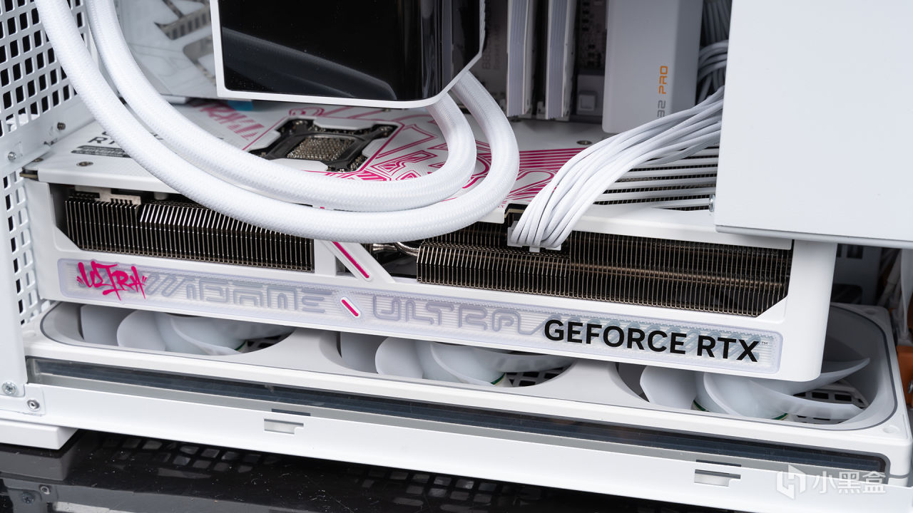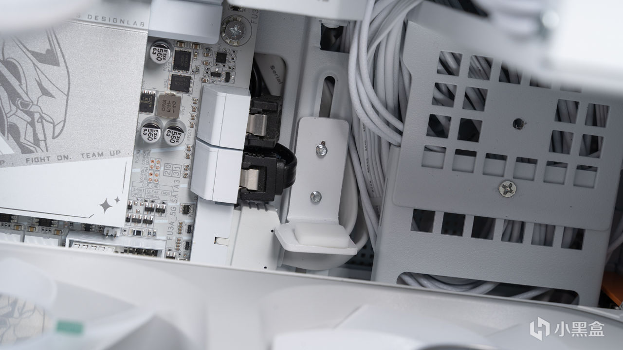 對於RTX 5080這麼厚重的顯卡,長期使用下來對主板會構成不小的壓力,D32 PRO附贈了一個簡易可調節的顯卡支撐架,可大大緩解壓力也能糾正顯卡“歪着裝”的視覺效果,同時能看到支架和主板接口也沒有任何衝突。