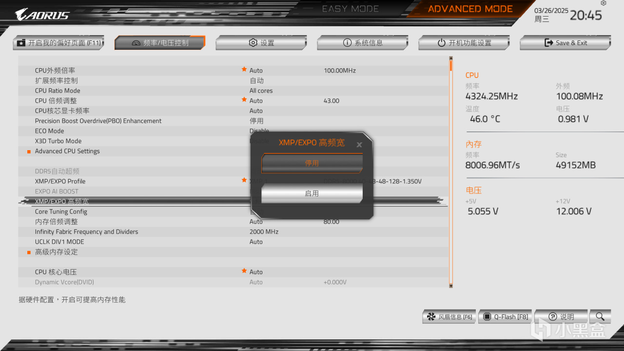 對於銳龍9 9950X3D來說,建議先更新最新BIOS版本再使用,B850M冰雕目前最新F3b版本,就有爲2CCD Ryzen 7000 & 9000處理器有針對性調度優化。除此之外,B850M冰雕還有一個技嘉黑科技功能XMP/EXPO高頻寬,開啓之後可在不改變內存頻率情況下,自動優化內存時序,從而達到一鍵穩定提升內存性能的效果。