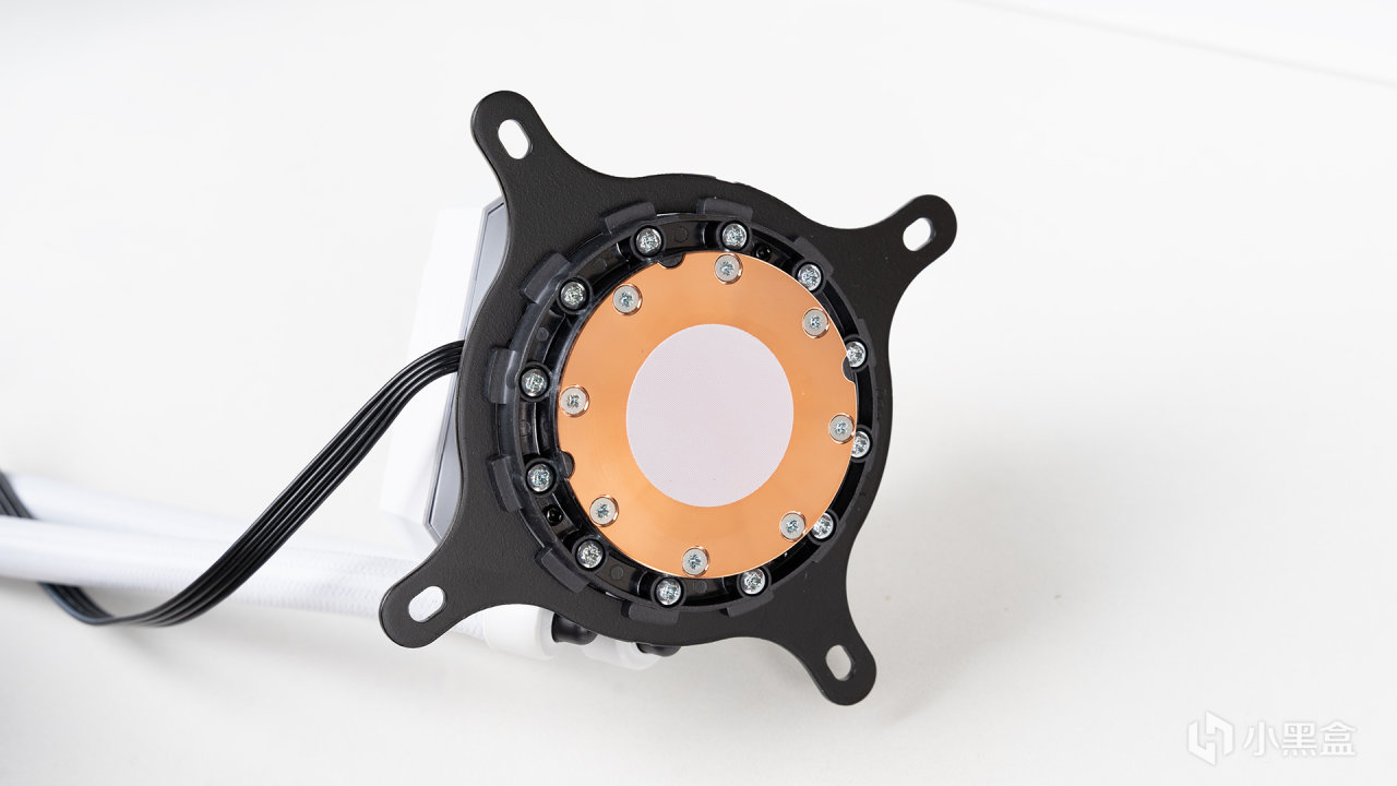 水冷銅底預塗了硅脂,並在冷頭部分已經預裝了Intel & AMD通用扣具,在更換平臺無需換裝扣具且安裝步驟也得到了精簡。