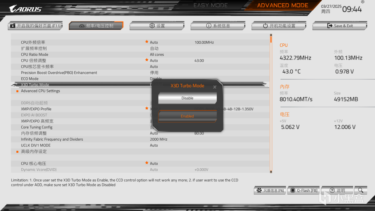 針對雙CCD的X3D處理器,各家主板廠商也推出了X3D Turbo Mode,開啓後會關閉CCD 1和超線程,保留帶有3D V-Cache的CCD 0,對部分遊戲有進一步增強性能的作用,具體我們下面測試部分展開細說。