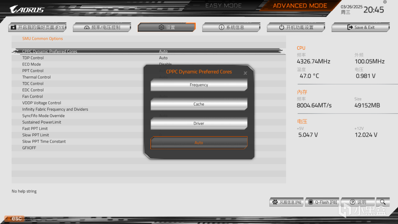 只要安裝的BIOS支持AGESA 1.2.0.3a,在主板BIOS內SMU選項中就能看到CPPC Dynamic Preferred Cores,有這個選項意味着主板就能自動根據使用程序負載不同CCD核心,當然別忘了還要配合最新芯片組驅動使用。另外如果想手動設置優先級,直接選擇Cache(3D V-Cache CCD)或者Frequency即可。