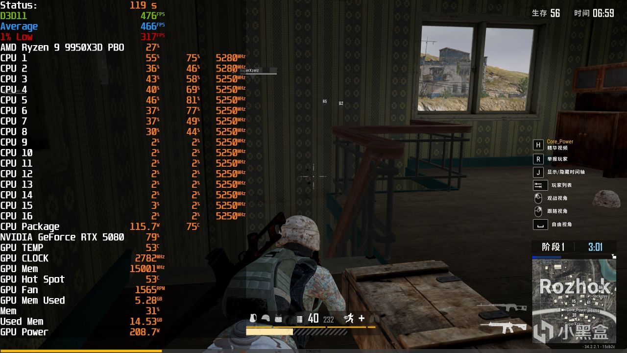 銳龍9 9950X3D+iGame GeForce RTX 5080 Ultra W OC,在2K《絕地求生》自定義三超高畫質100%渲染,平均幀數達到466fps,1% LOW幀317fps