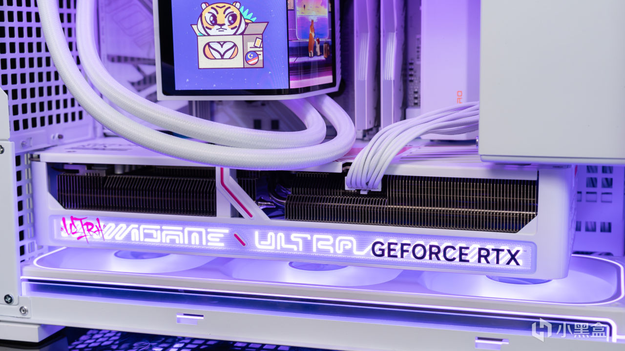 整機點亮效果,換成了別有一番韻味的純紫色,視覺效果還是相當不錯的,由於水冷屏幕是曲面屏,即便它有采用防反光塗層,但仍建議各位搭配無光內存條,或者直接把LED燈關閉,這樣可以做到最大程度減少視覺干擾。