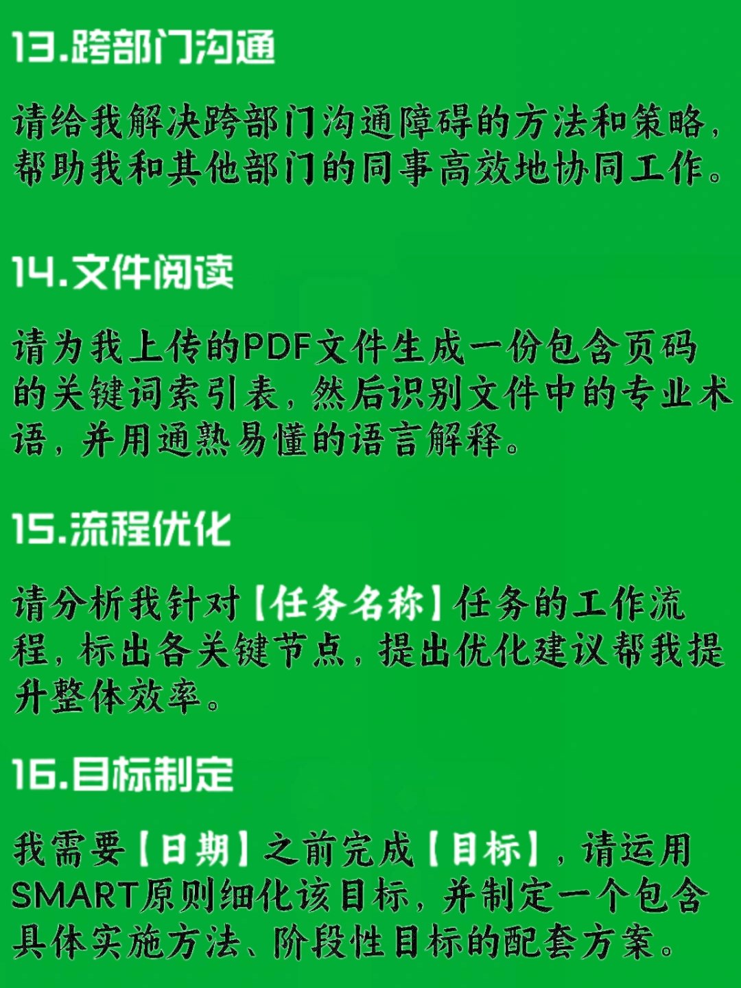 指令都整理在圖片裏啦,趕緊收藏起來,下次工作時就能派上用場,從此告別加班!要是大家還有私藏指令,歡迎在評論區分享~