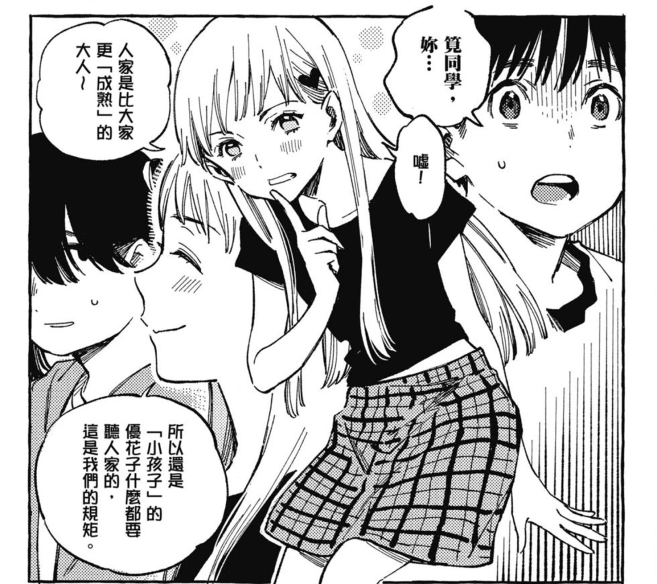 我們說回《淺子》,很顯然的是,作爲一部還算大衆向的作品,《淺子》的人物塑造遠沒有《漂流少年》那麼極端,作者仍然較爲保守地選擇去對角色進行一定程度的塑造,去完善他們的動機本身。但他仍然呈現出我所說的一種符號化傾向。