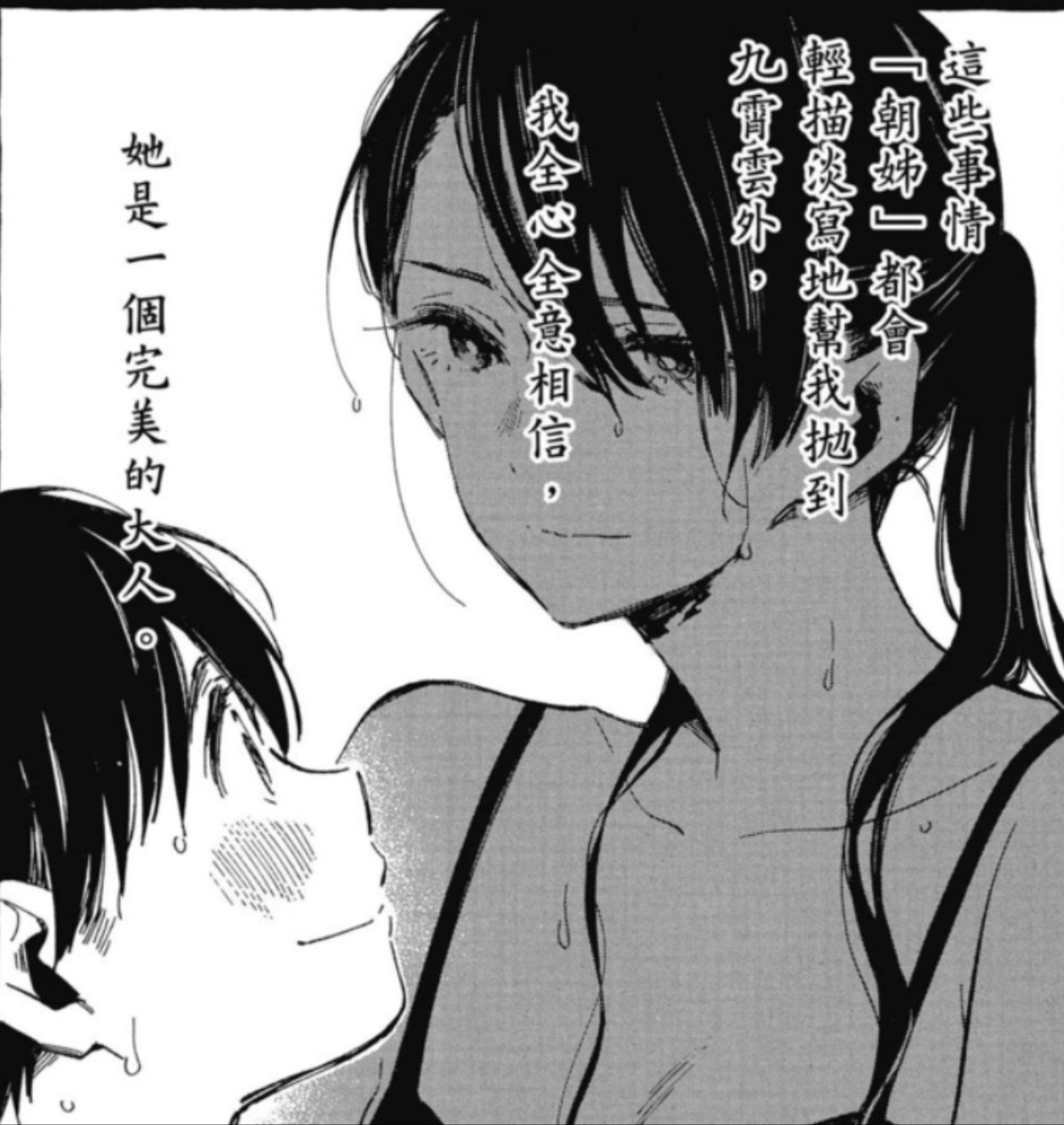 換句話說,朝姐的存在對將司而言已經不再是一個個體,而是承載了將司年少時對於成人幻想的集合體