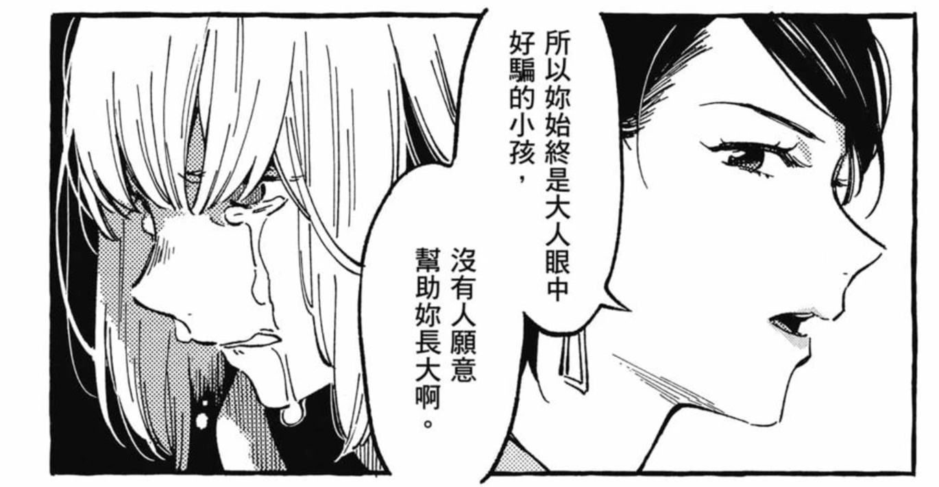 我們可以很輕鬆地感受到這個角色身上所具有的符號屬性,她所代表的就是那些自以爲是打着成熟的旗號去壓迫別人的霸凌者,同時作者也通過這個角色來傳達自己的看法——即真正的成人並不在於年齡也不在於對弱者的凌辱,而在於一些更加深層的存在