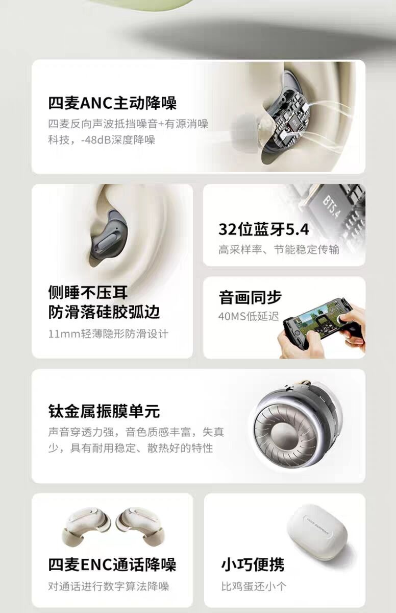 加上小悠支持AAC高清音頻解碼,搭配藍牙5.4技術,傳輸穩定且延遲低至40ms