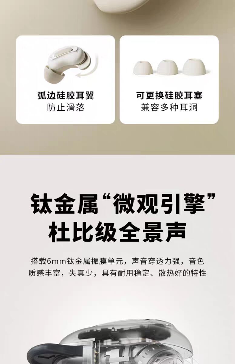 搭載6mm鈦金屬振膜單元,聲音穿透力強,音色