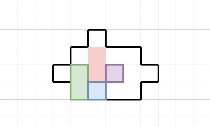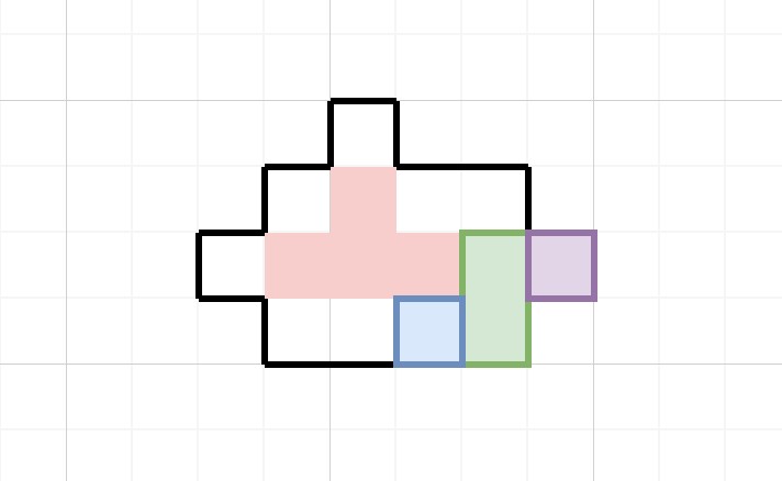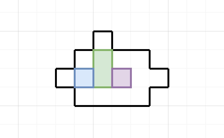 不难发现,1x2块和第二个1x1块在某个瞬间一定会形成下面这个布局(先不考虑第一个1x1块的位置,只需要知道它在第三行就好):