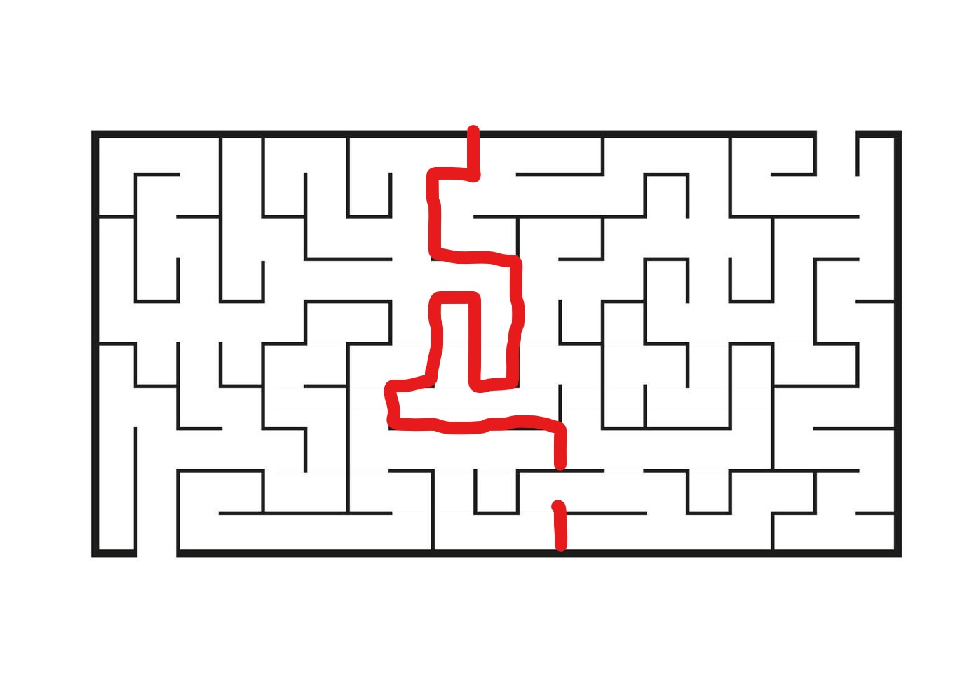 那这又有什么帮助呢?可以看出,整个迷宫现在就被分界线分成了“迷宫A”和“迷宫B”两个部分,现在你只需要分开解决两个迷宫就可以解开整个迷宫了。